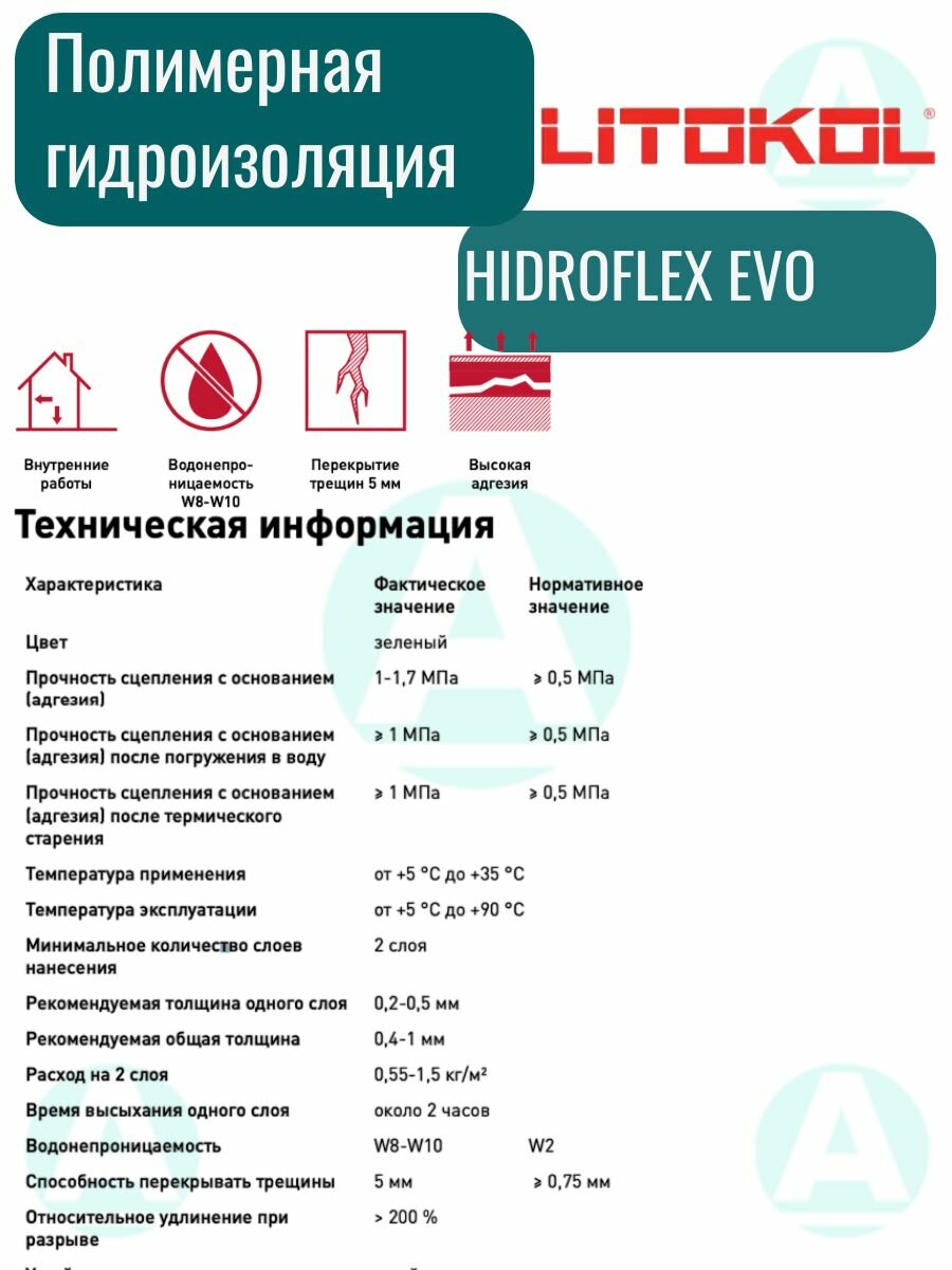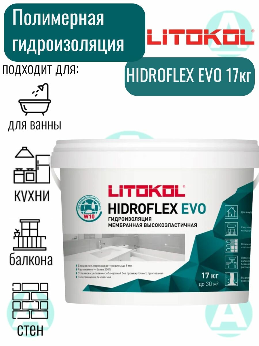 LITOKOL Гидроизоляция для ванны и кухни, HIDROFLEX EVO 17 кг интересное: