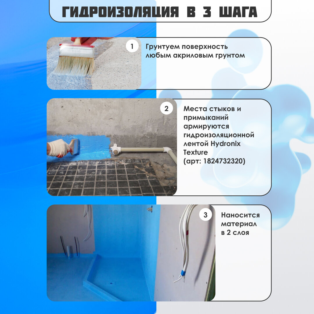 Гидроизоляция для ванны, душевой под плитку Hydronix Home - жидкая резина для бетона. Жидкая мастика гидроизоляционная интересное: