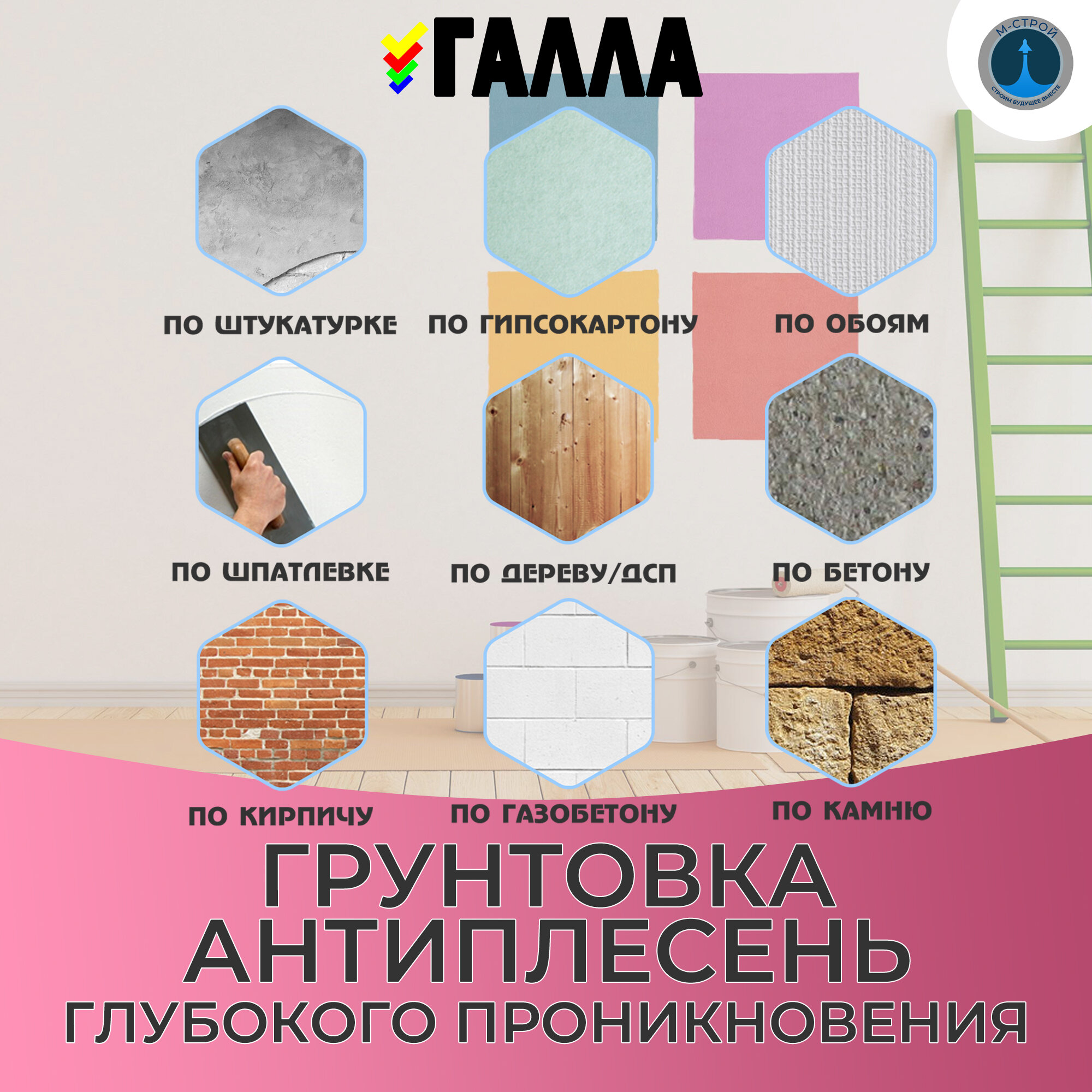 Грунтовка галла антиплесень глубокого проникновения для стен, пола, потолка, фасадов противоплесневая 1 л/ 1 кг
