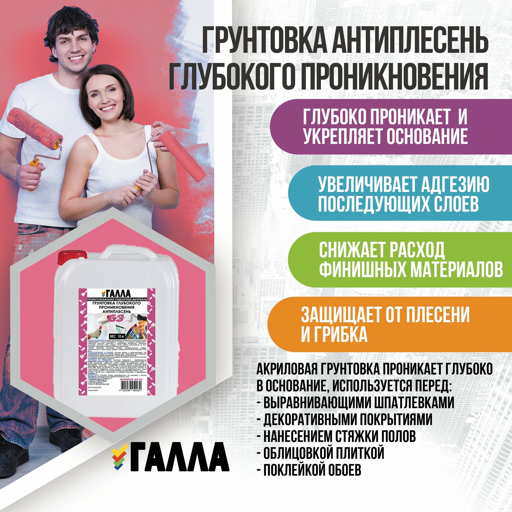 Грунтовка галла антиплесень глубокого проникновения для стен, пола, потолка, фасадов противоплесневая 10 л/ 10 кг