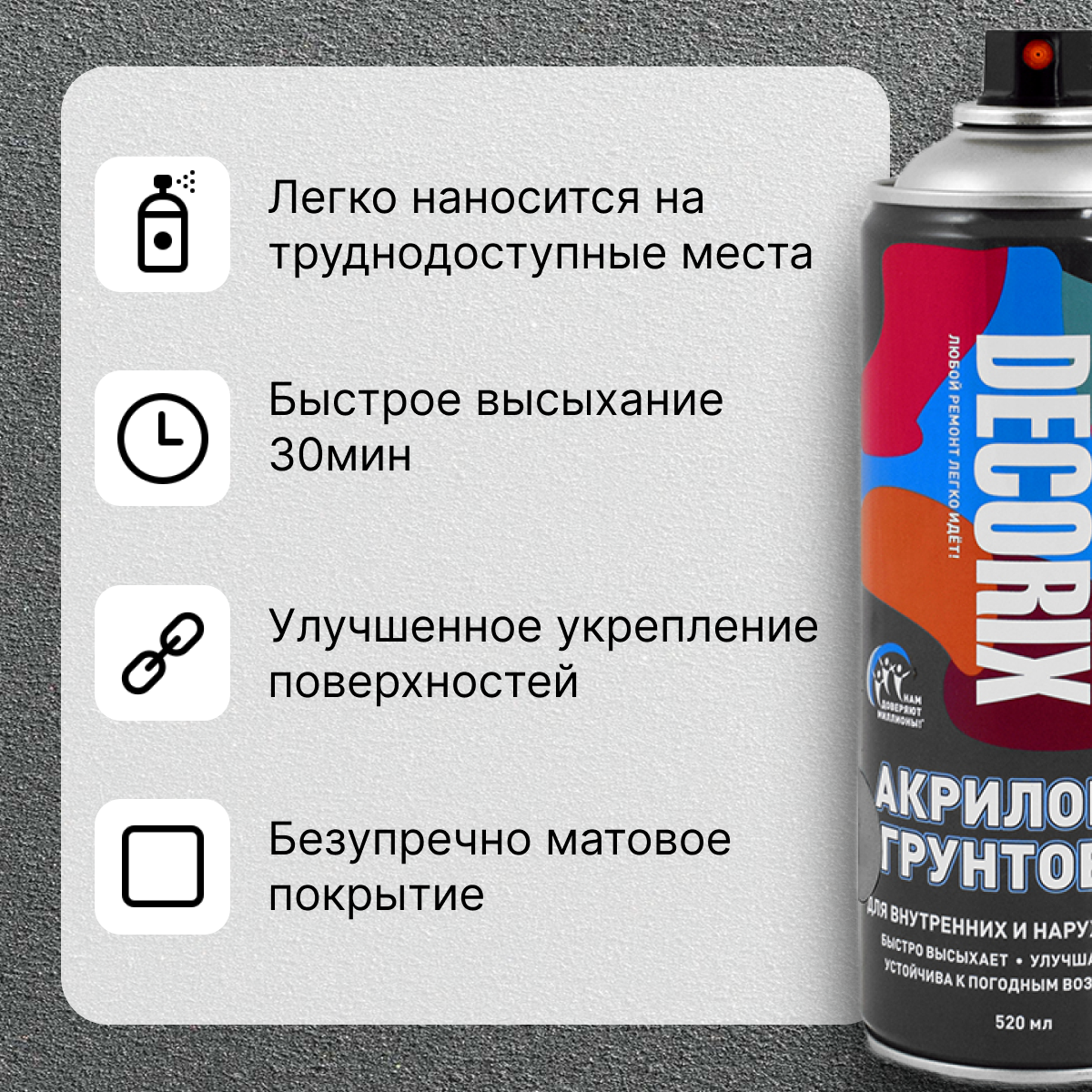Грунтовка аэрозольная акриловая матовая DECORIX серая 520мл А10