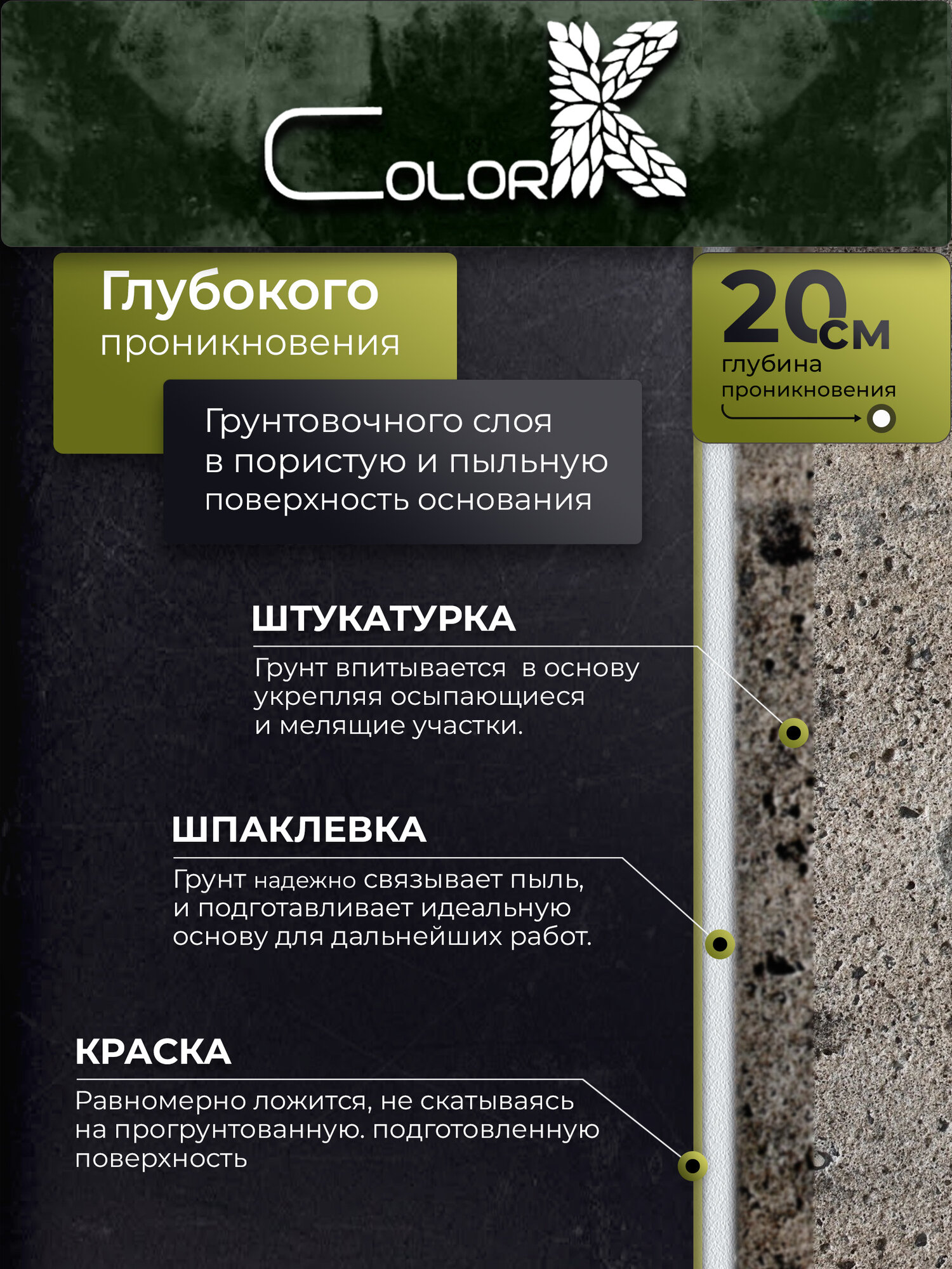 Грунтовка ColorK, глубокого проникновения, акриловая, прозрачная, для наружных и внутренних работ, 1л интересное: