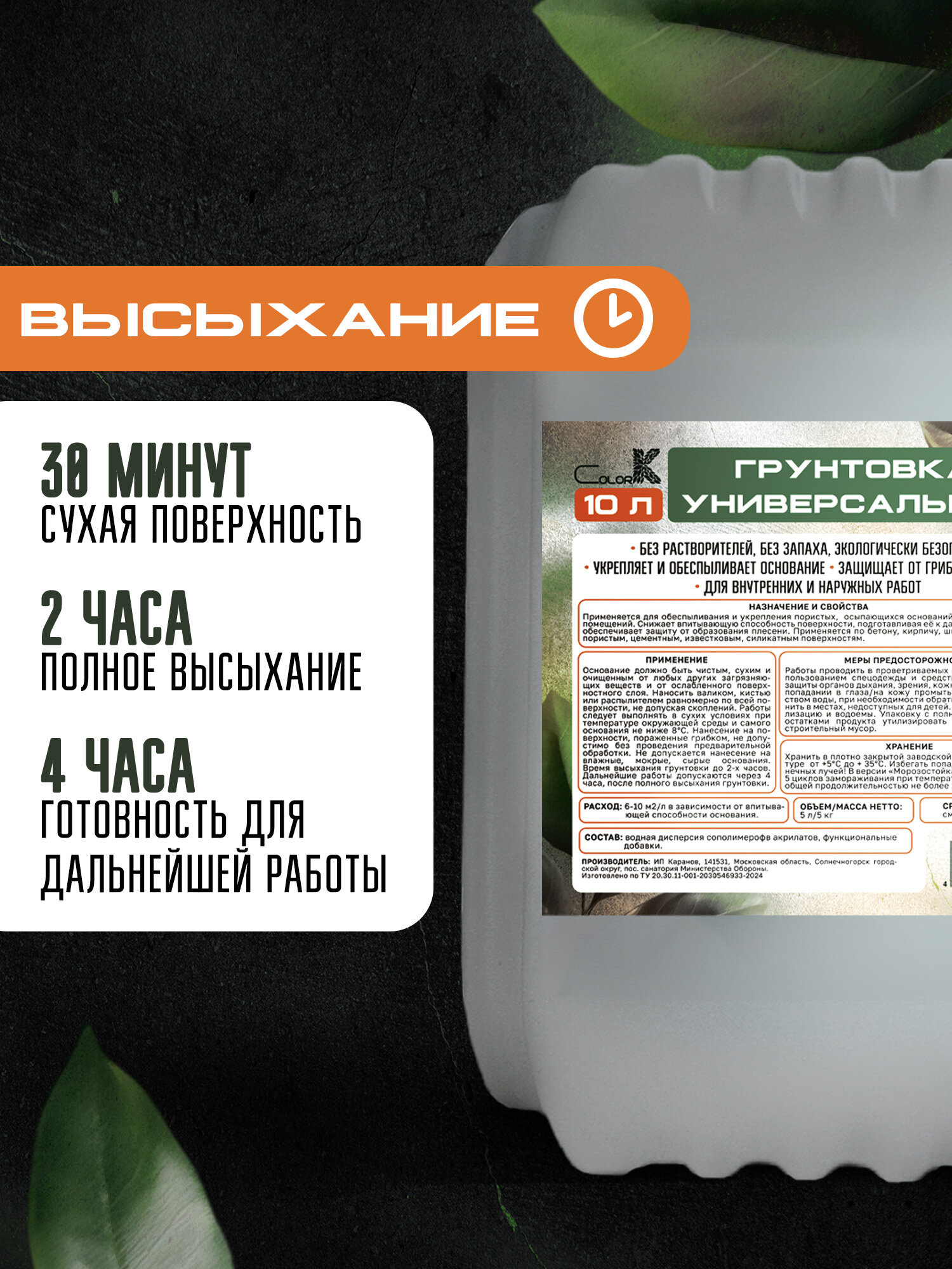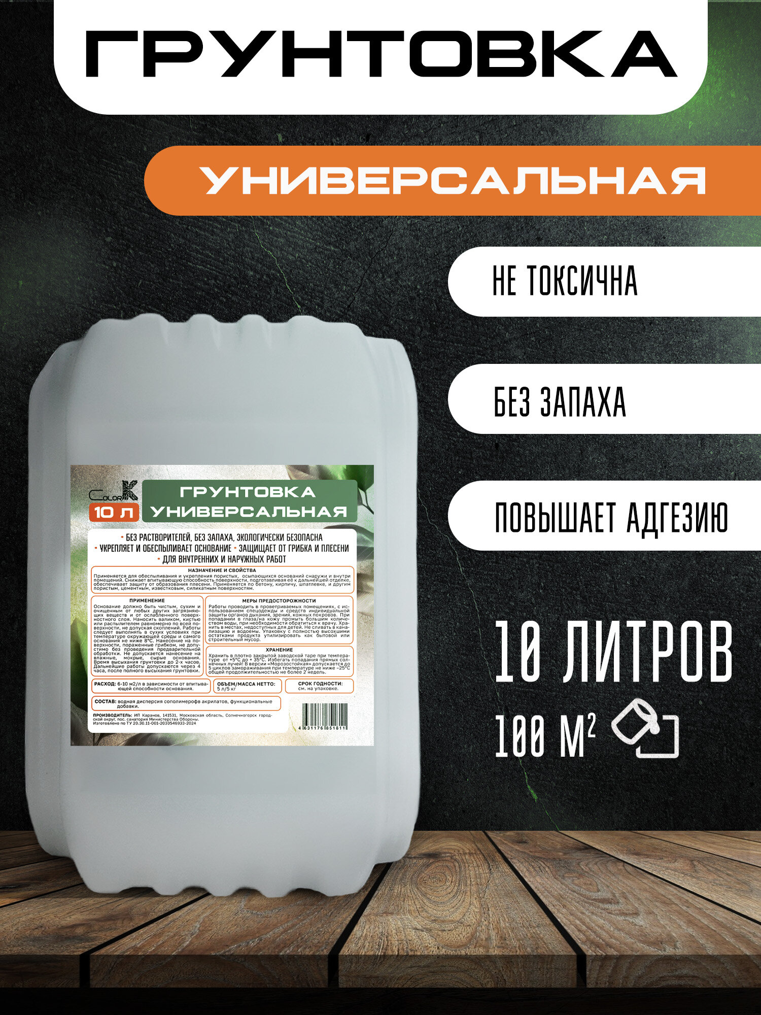 Грунтовка ColorK, универсальная, глубокое проникновение, против плесени, бесцветная, 10л интересное: