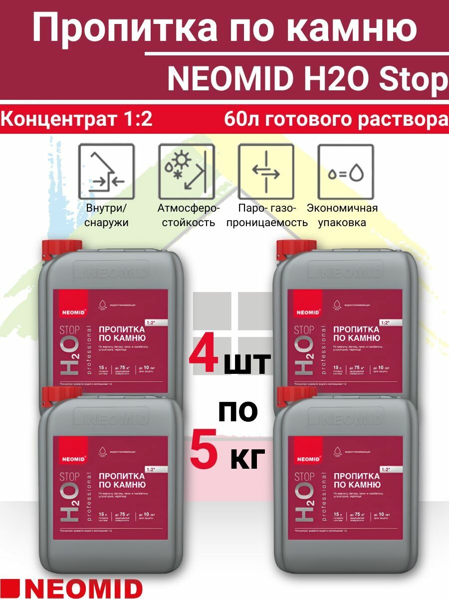 Купить Гидрофобизатор влагоизолятор NEOMID H2O Stop 20 л. (5л-4шт) концентрат 1:2 (60л готового раствора)