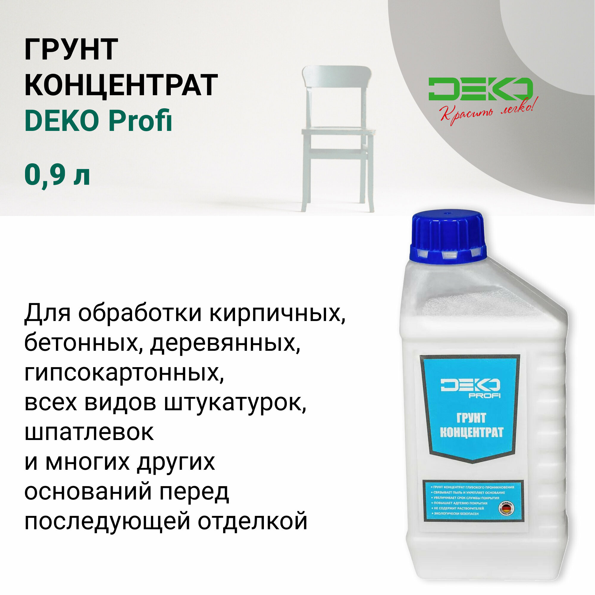 Грунтовка концентрат DEKO Profi 0,9 л Адгезионная Укрепляет поверхность интересное: