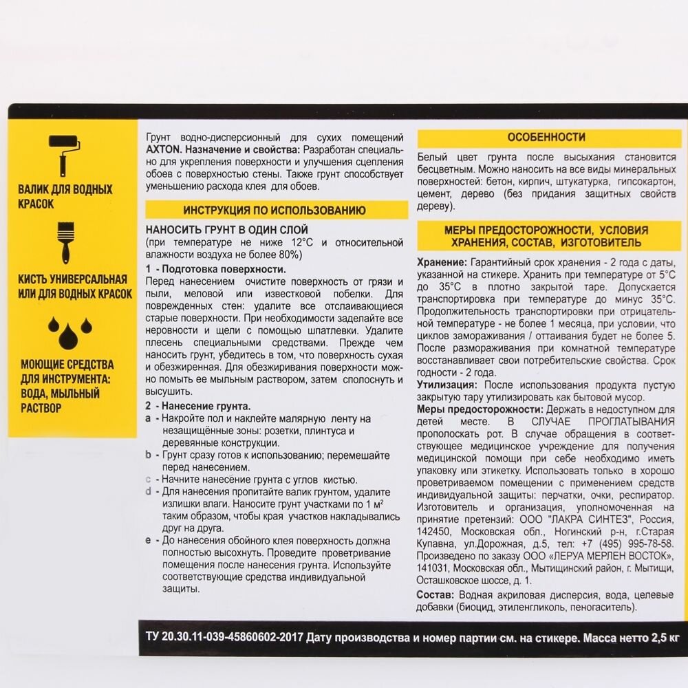 Акстон грунтовка перед поклейкой обоев (2,5л) / AXTON грунт перед поклейкой обоев для сухих помещений (2,5л) интересное: