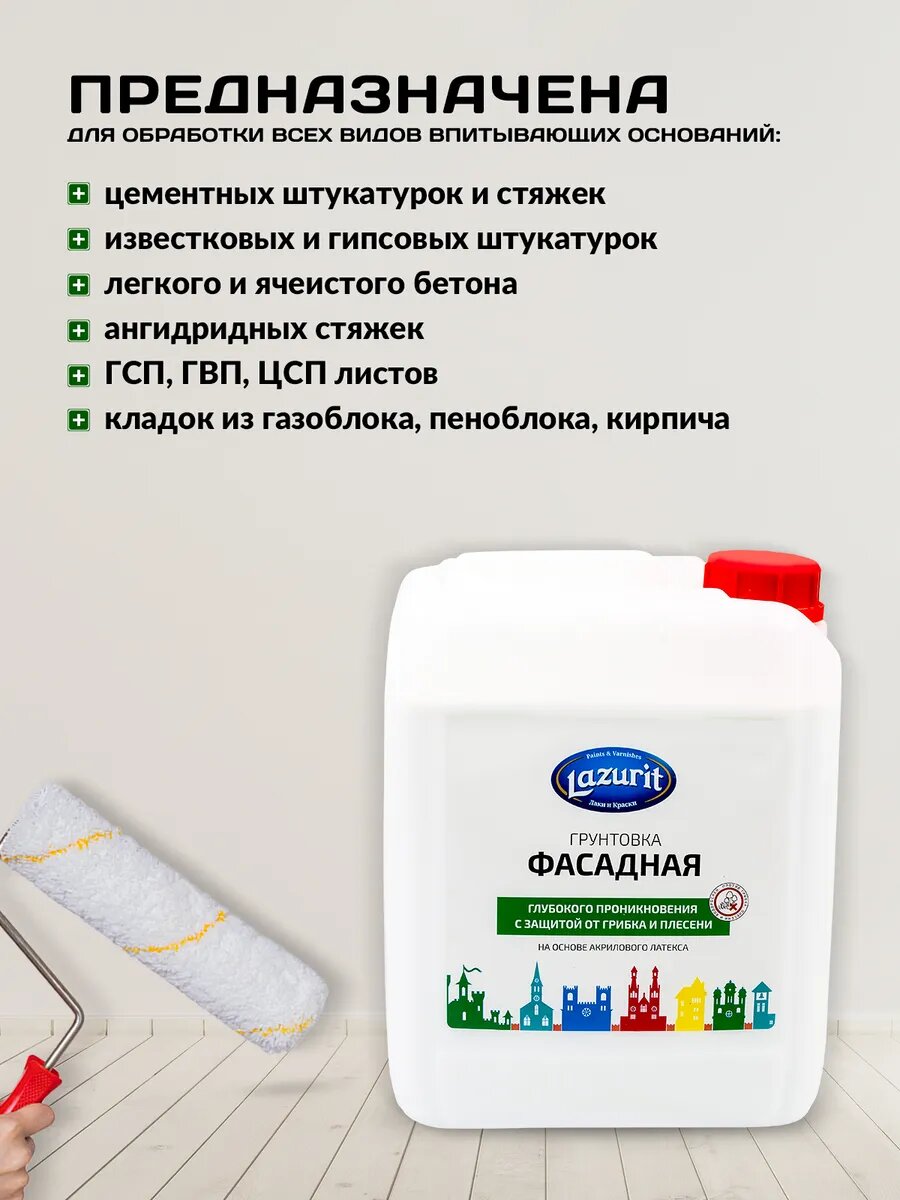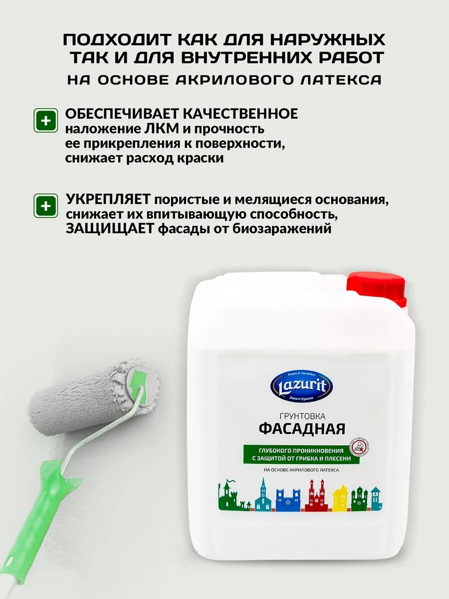 LAZURIT Грунтовка Фасадная Глубокого проникновения 10 кг интересное: