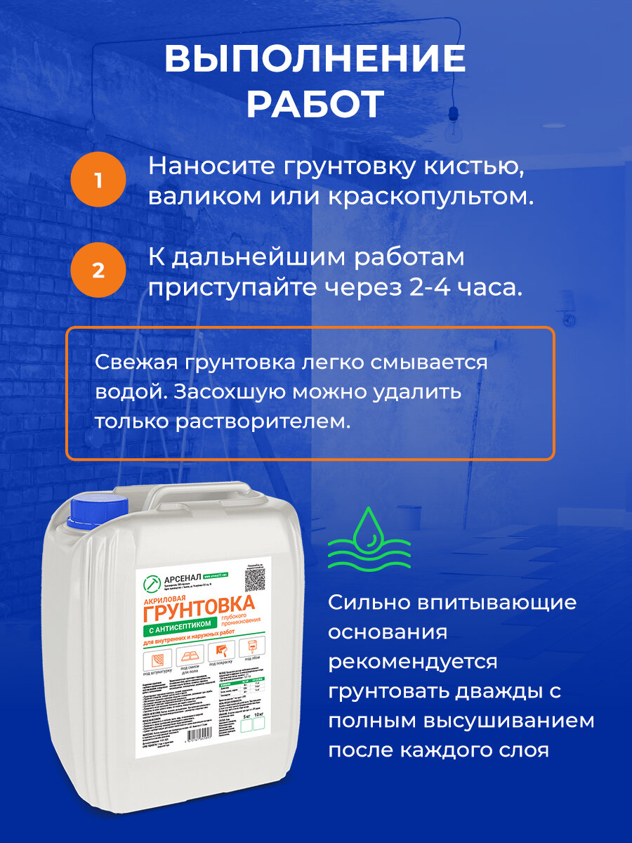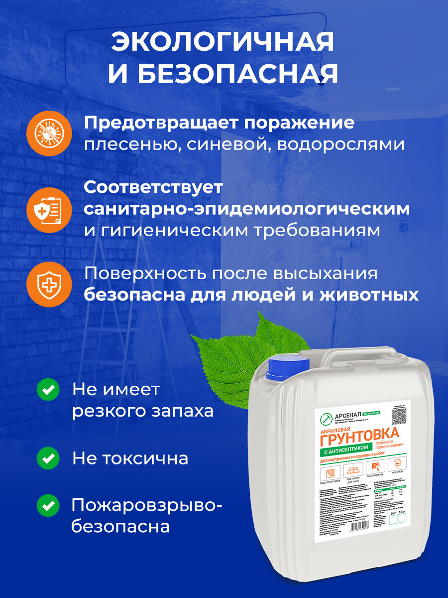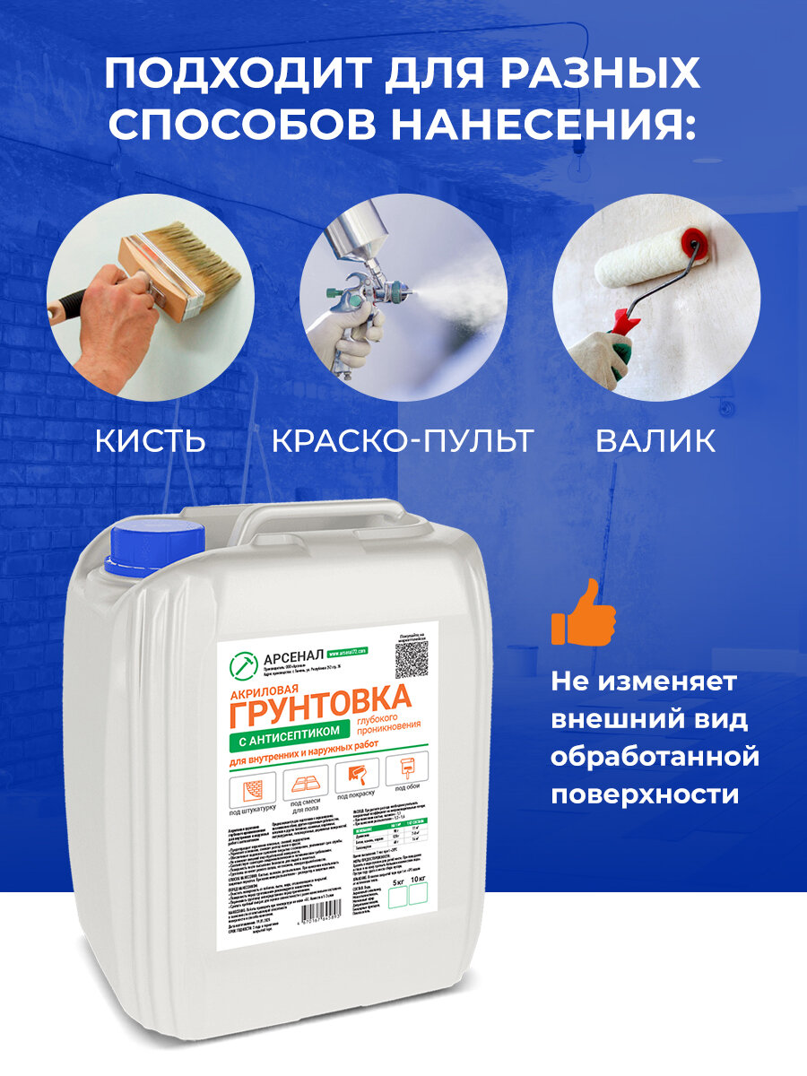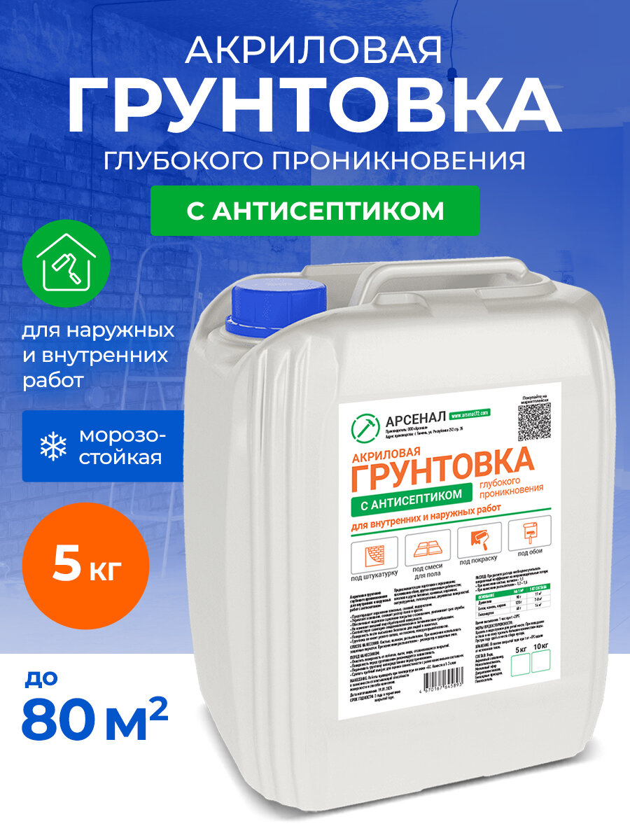 Грунтовка глубокого проникновения Арсенал, с антисептиком, 5 кг интересное: