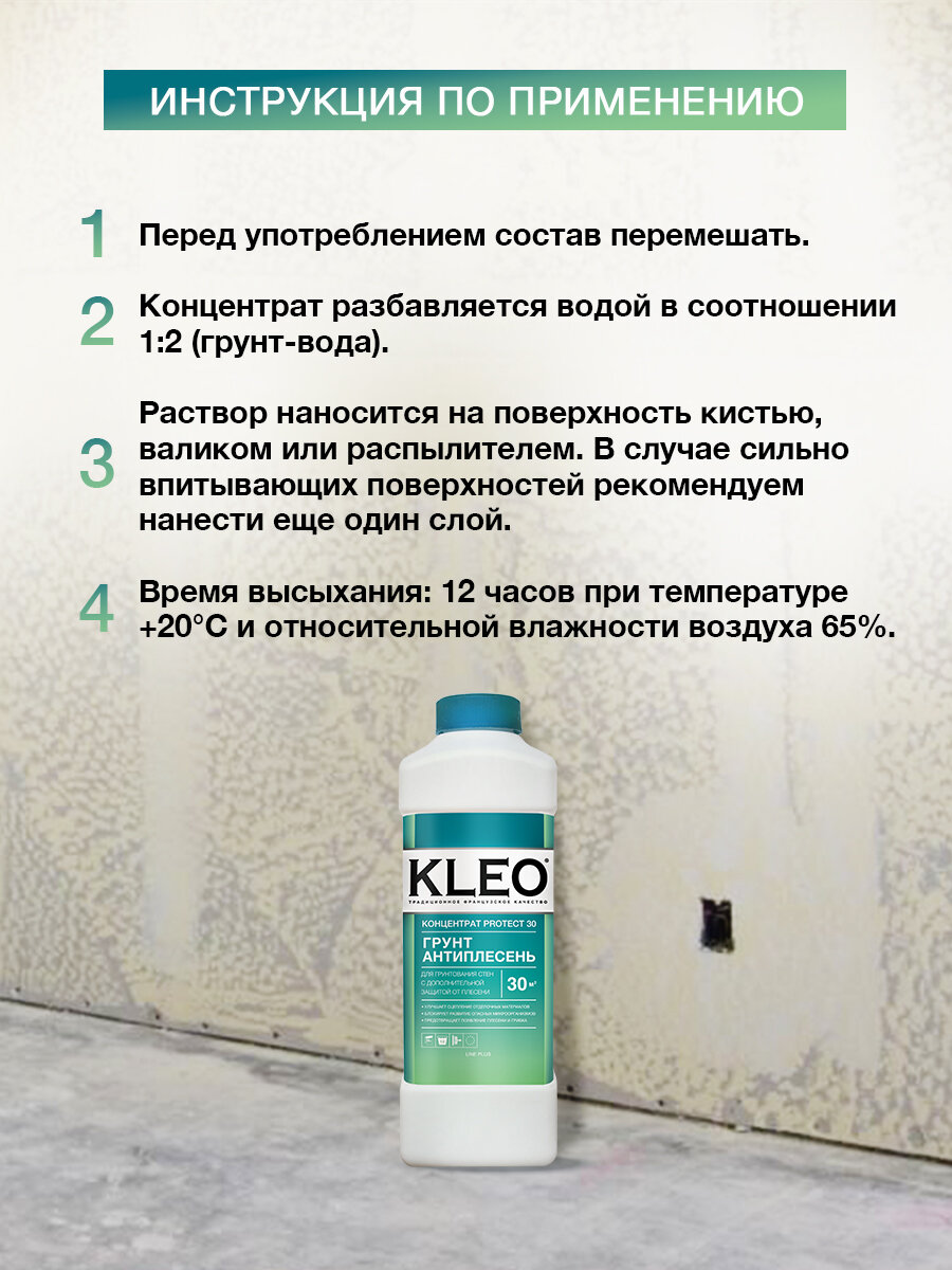 Грунтовка для стен под обои от плесени концентрат KLEO PROTECT 1:2 интересное: