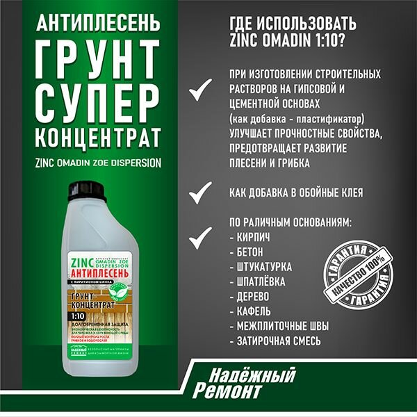 Грунтовка Антиплесень Цинк 1000, для стен и потолков, с пиритионом цинка интересное: