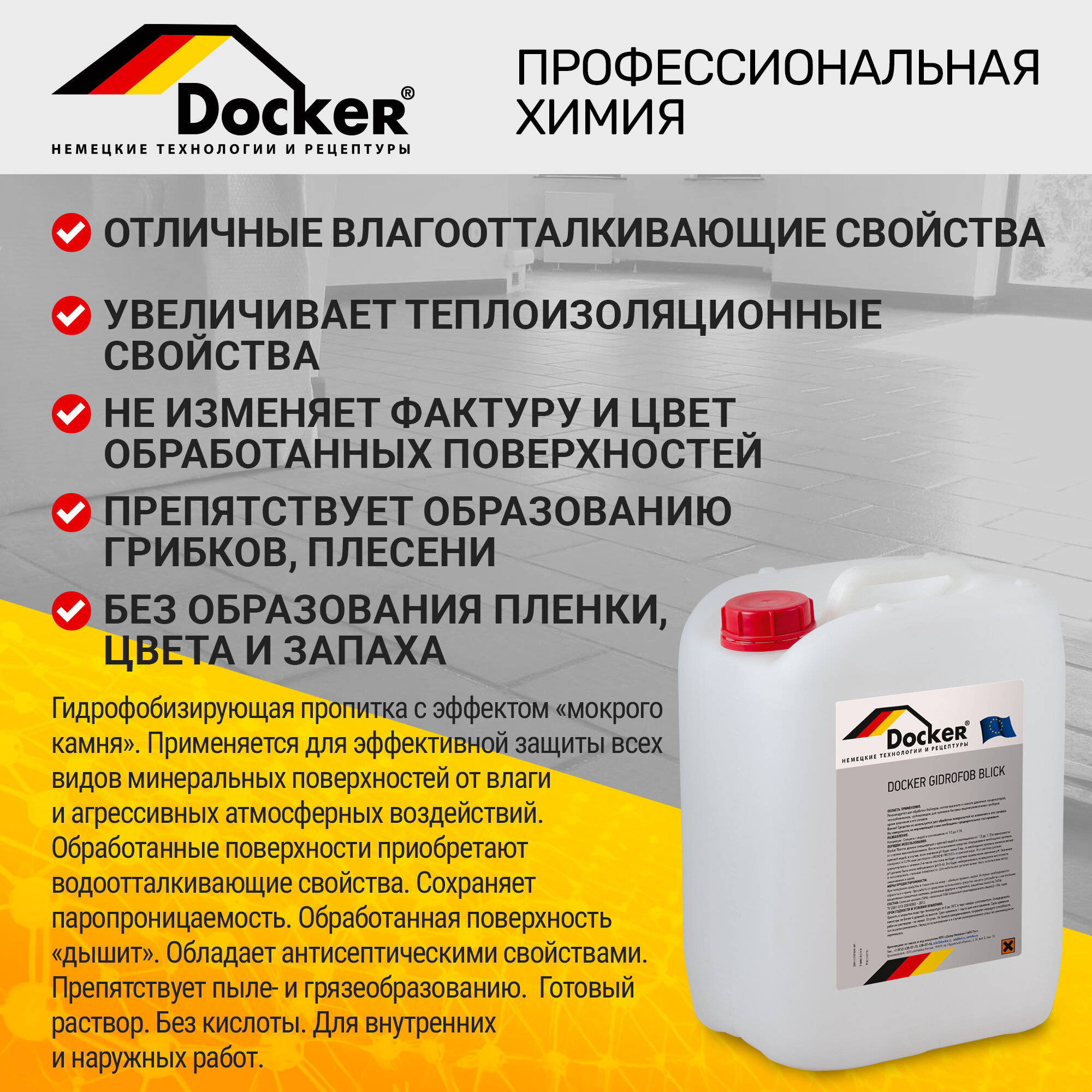 DOCKER GIDROFOB BLICK готовый раствор. Гидрофобизатор с эффектом мокрого камня (5 л) интересное: