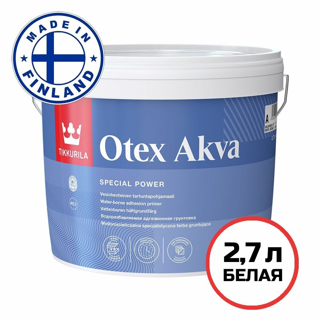 Грунтовка Tikkurila Otex Akva / Тиккурила Отекс Аква адгезионная на водной основе, база А, 2.7 л интересное: