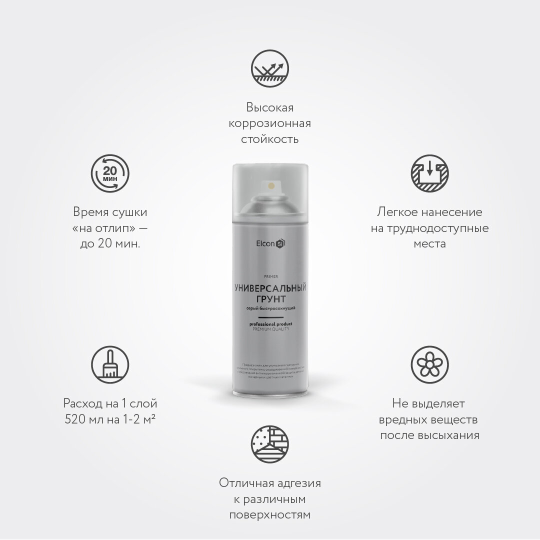 Купить Универсальный акриловый грунт Elcon, серый, аэрозоль, 520 мл