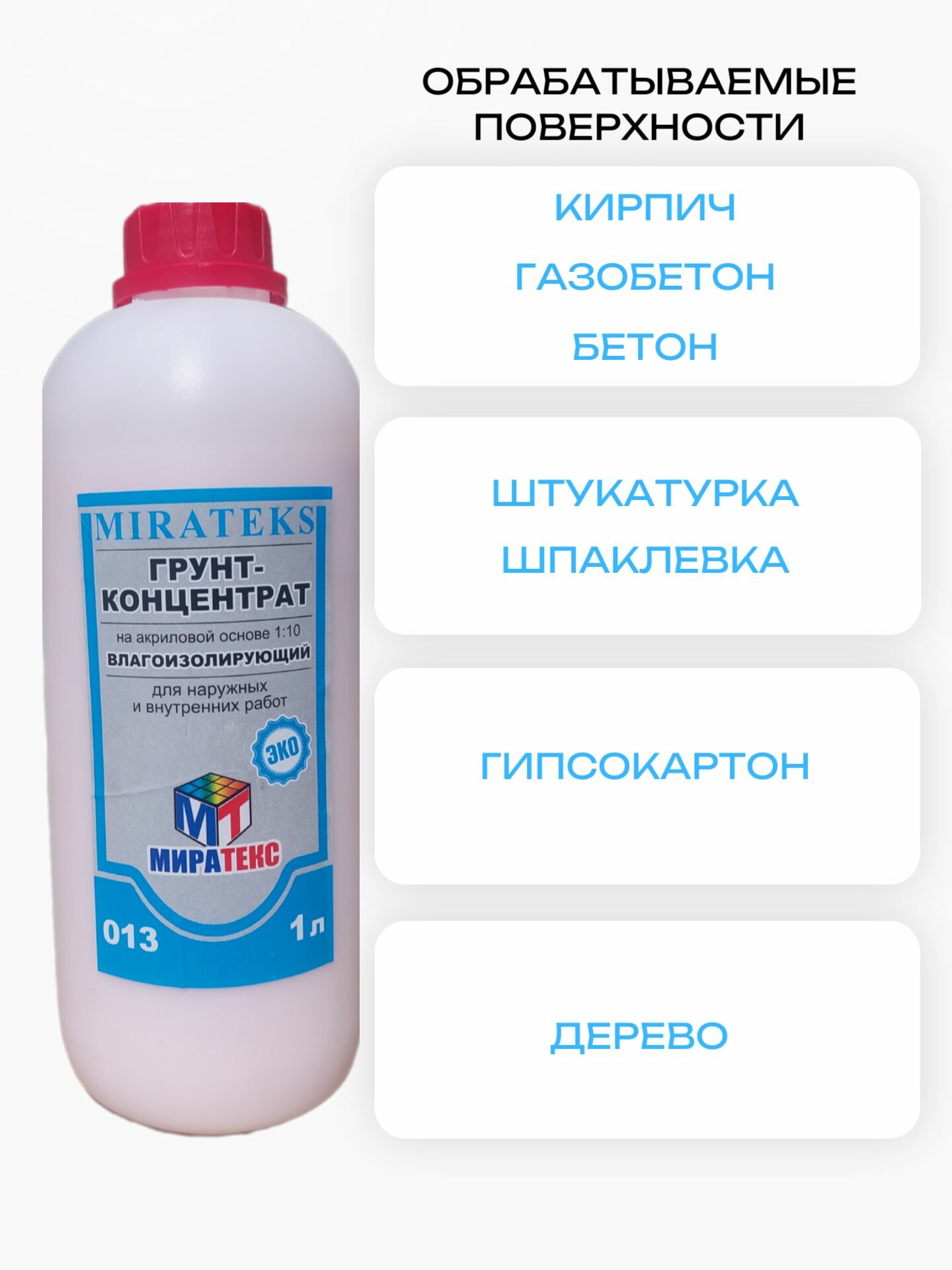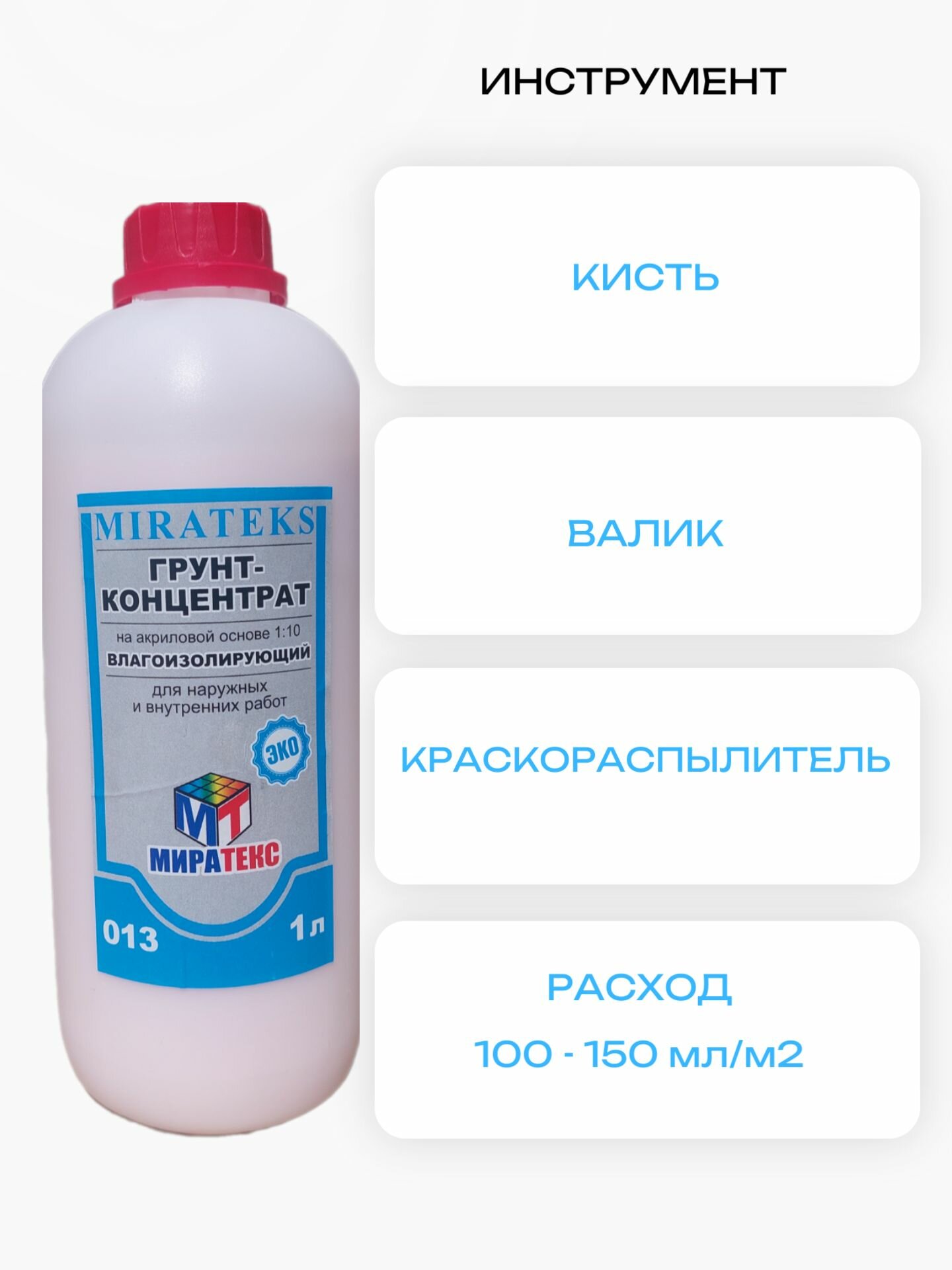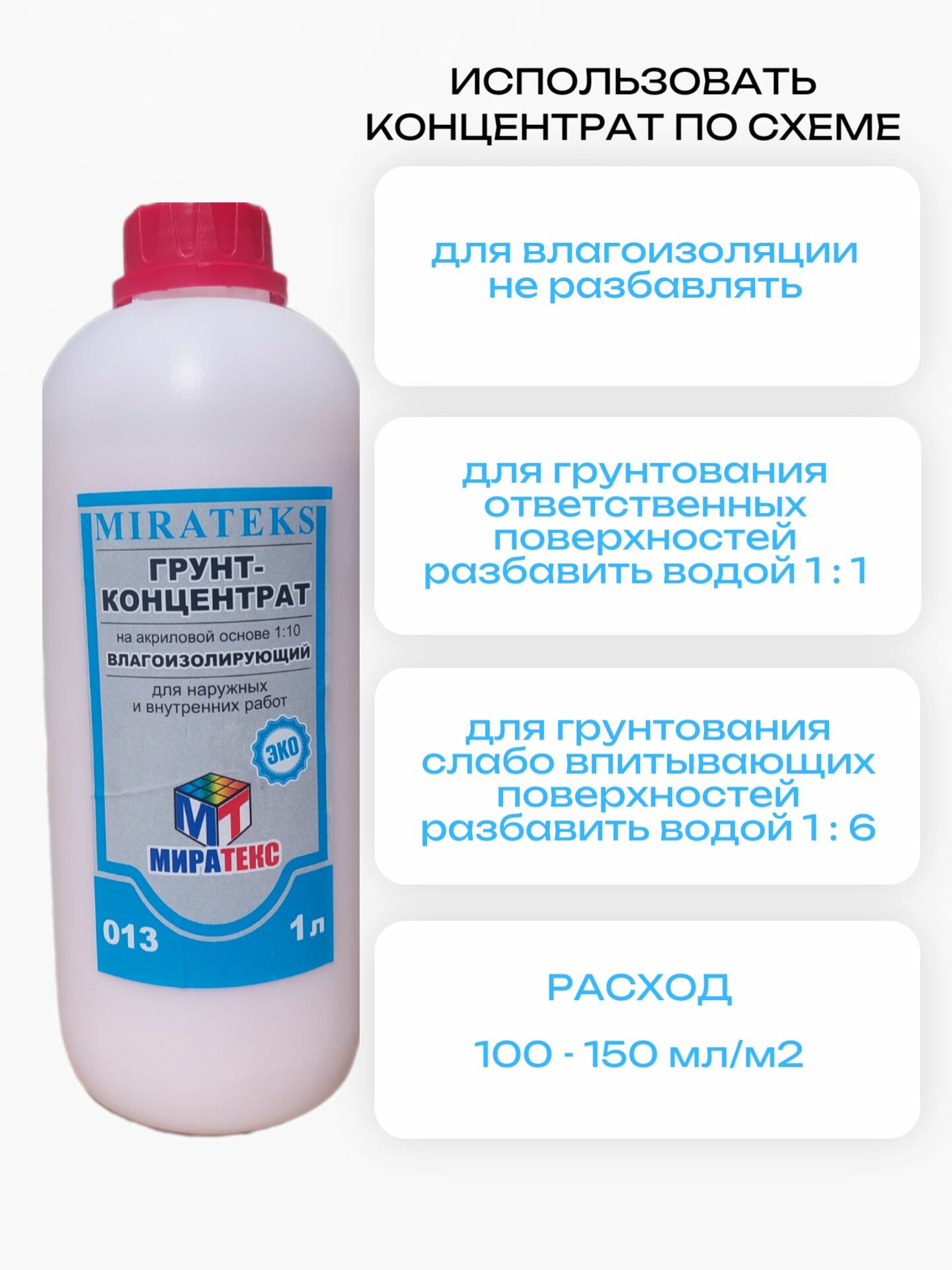 Грунтовка, грунт концентрат 1:10 акриловый Миратекс, 1 л интересное:
