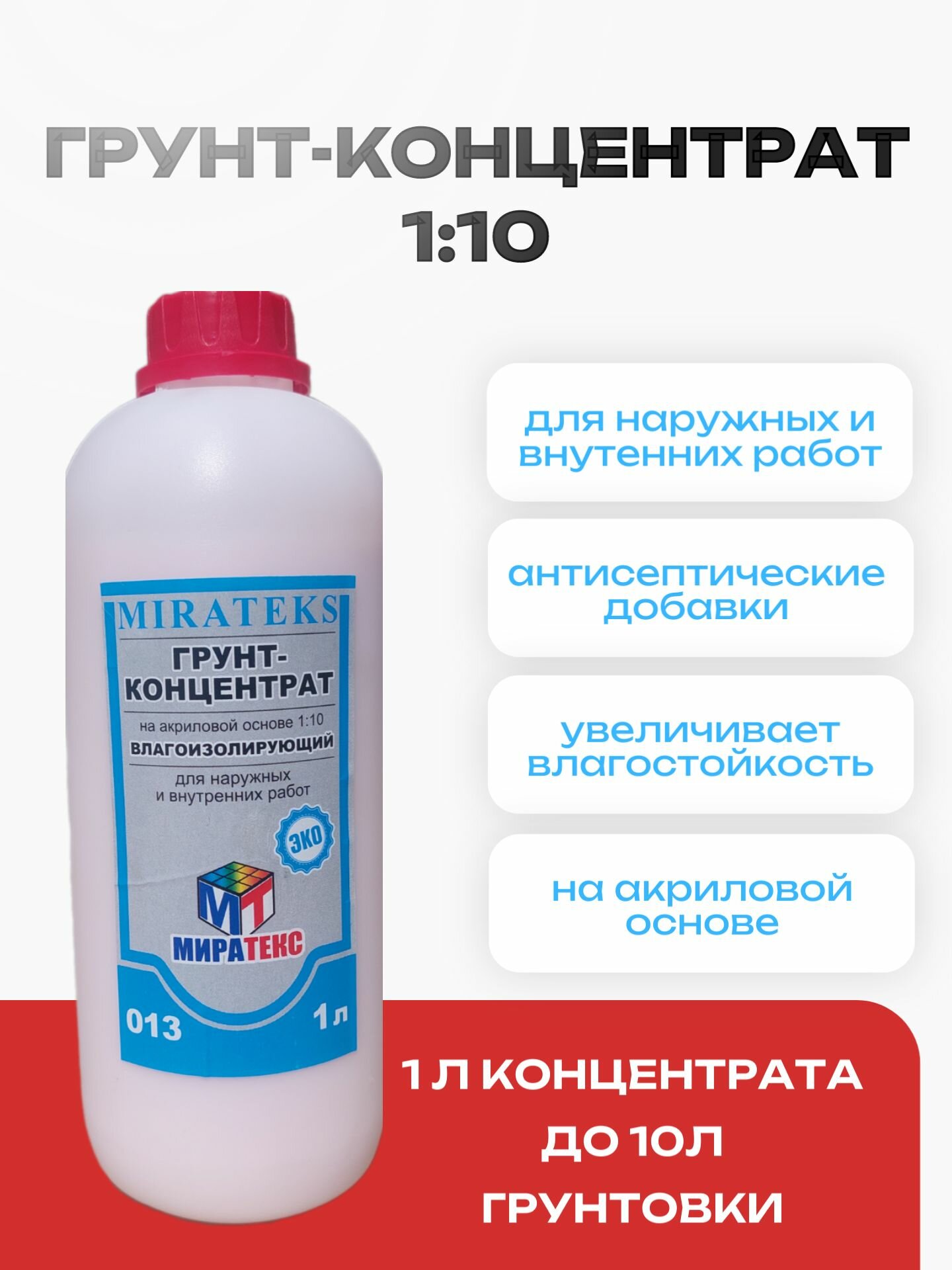 Купить Грунтовка, грунт концентрат 1:10 акриловый Миратекс, 1 л