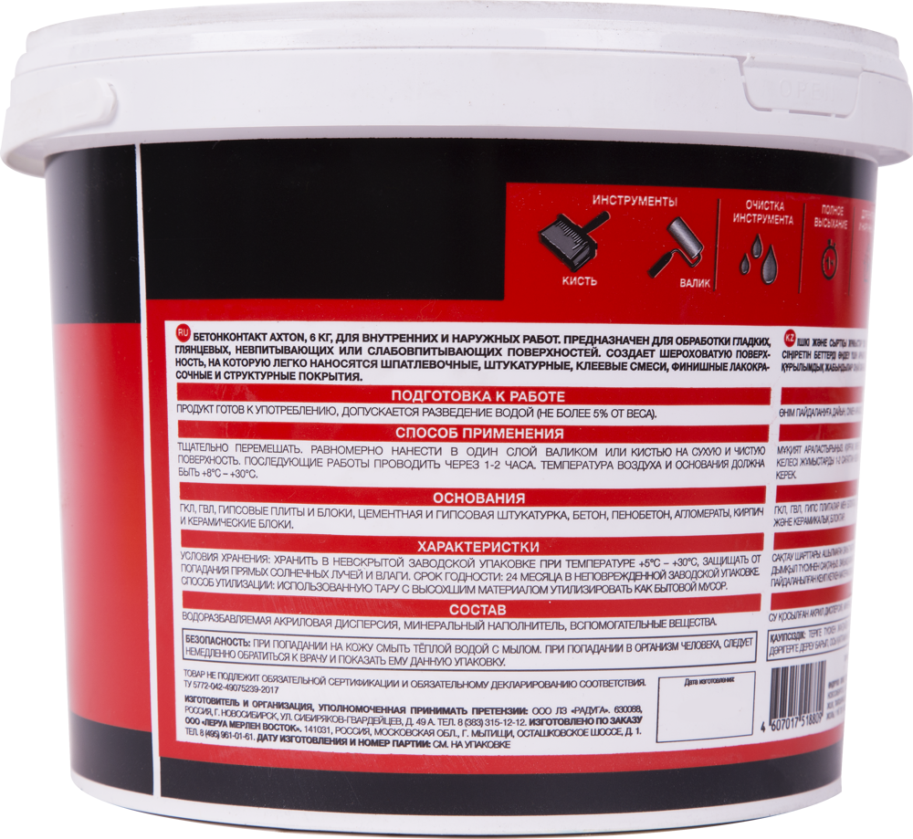 Ниже Вы можете прочитать отзывы на Акстон бетонконтакт для внутренних и наружных работ (6кг) / AXTON бетонконтакт грунтовка для сцепления раствора с основанием (6кг), ознакомится с подробными характеристиками, посмотреть интересные обзоры и фотографии на Акстон бетонконтакт для внутренних и наружных работ (6кг) / AXTON бетонконтакт грунтовка для сцепления раствора с основанием (6кг).