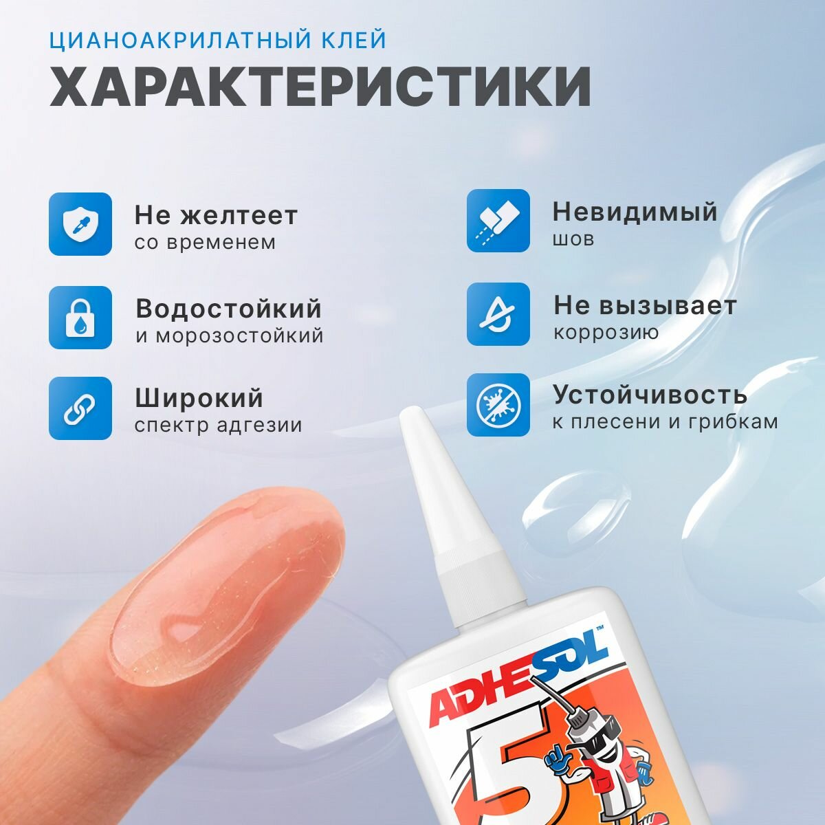 Супер клей цианоакрилатный, секундный, универсальный 50мл. ADHESOL 5СЕК интересное: