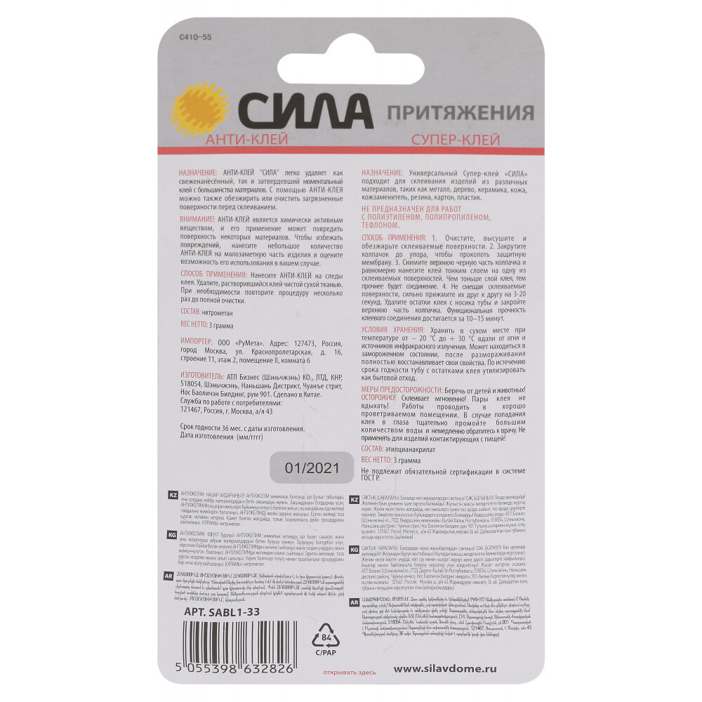 Купить Супер клей и антиклей сила SABL1-33 универсальный 3 г + антисуперклей 3 г
