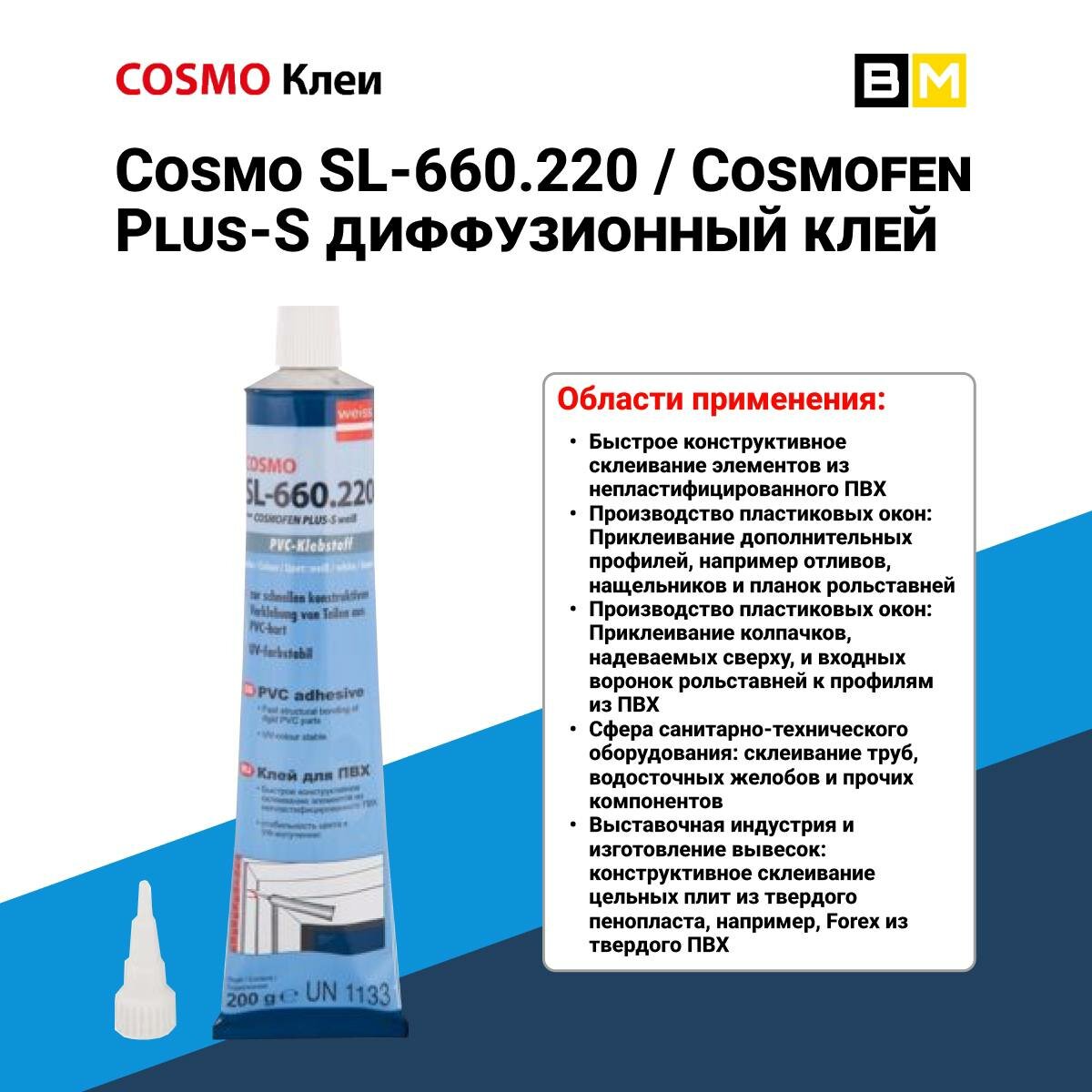 Клей для ПВХ Cosmo SL-660.220 (fen Plus-S), 200 г, белый