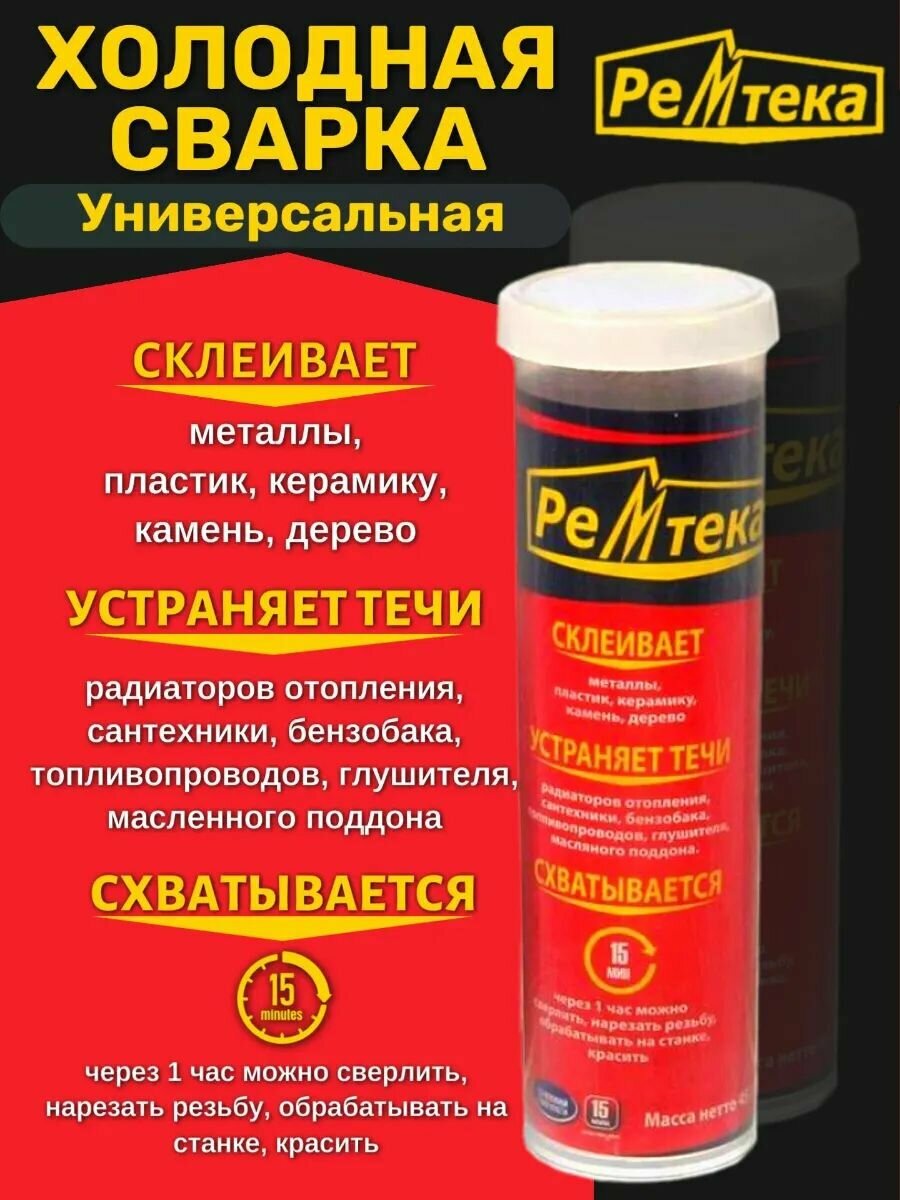 Клей холодная сварка РЕМТЕКА универсальная 45гр. для прочного соединения и герметизации деталей в различных сочетаниях интересное: