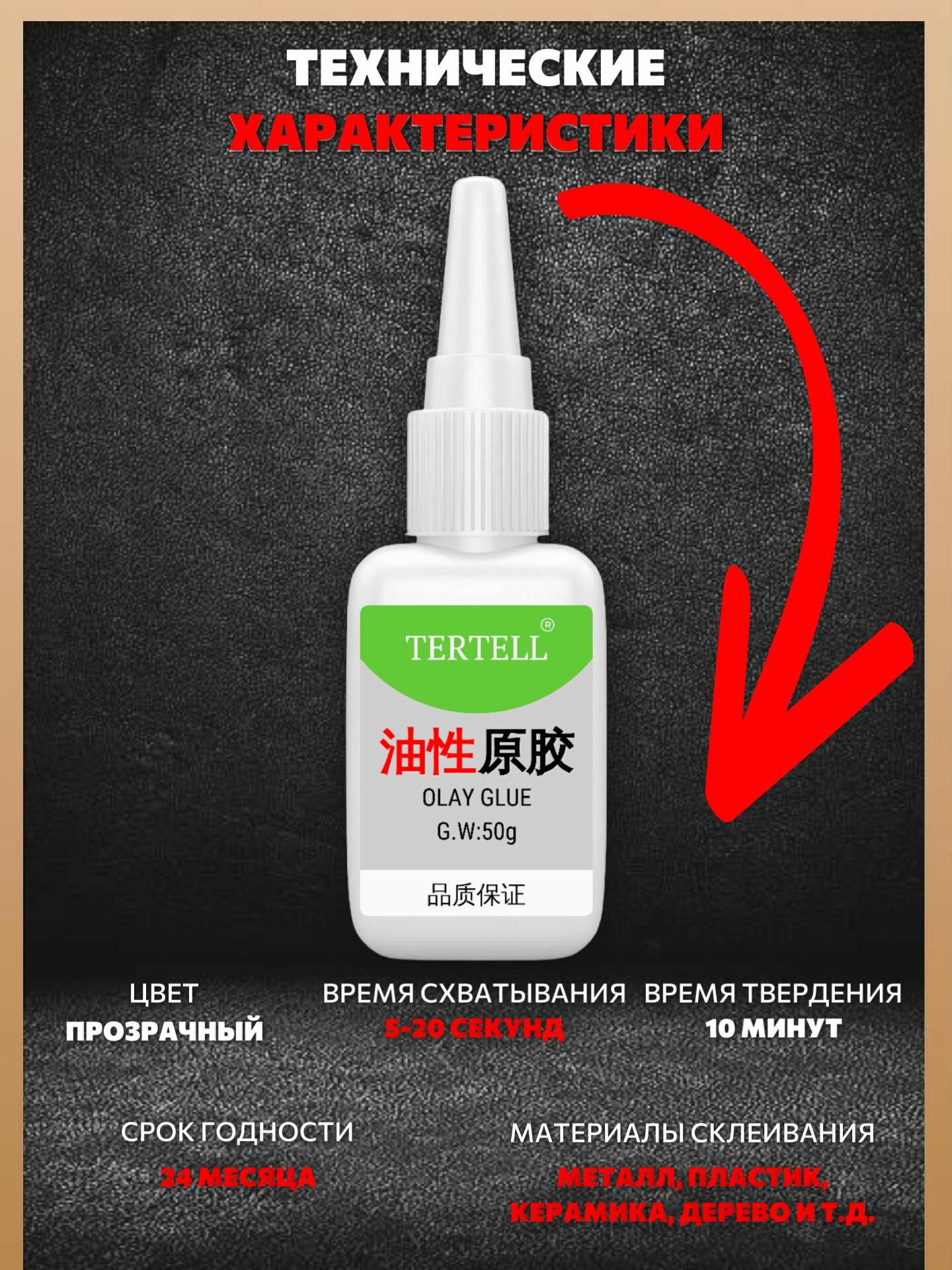 50 гр. Супер клей "TERTELL", универсальный, секундный, прозрачный,1 шт.