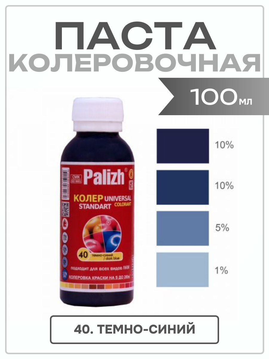 Купить Колеровочная паста универсальная №40 темно-синий колер "ПалИж" 0,1 л