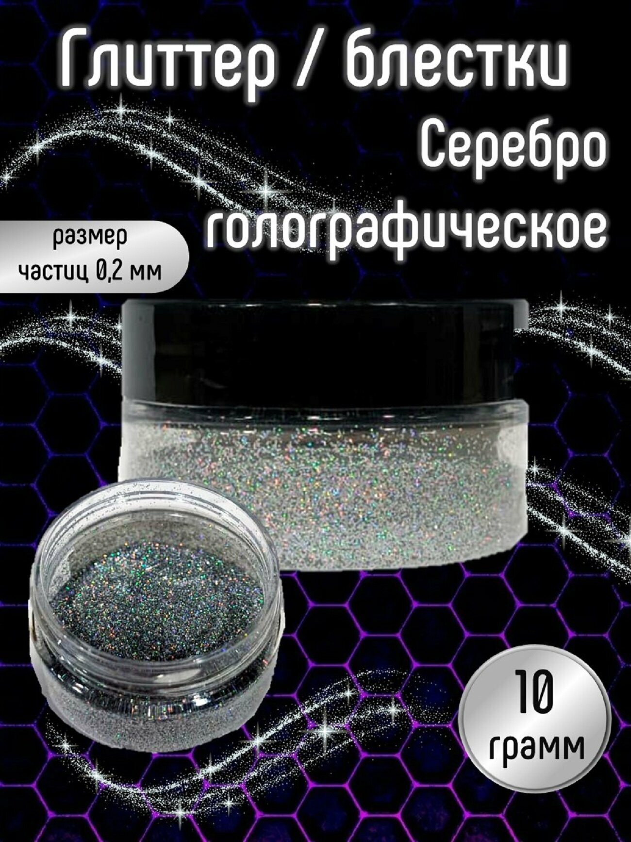 Купить Глиттер/блестки Серебро голографическое, 10 грамм