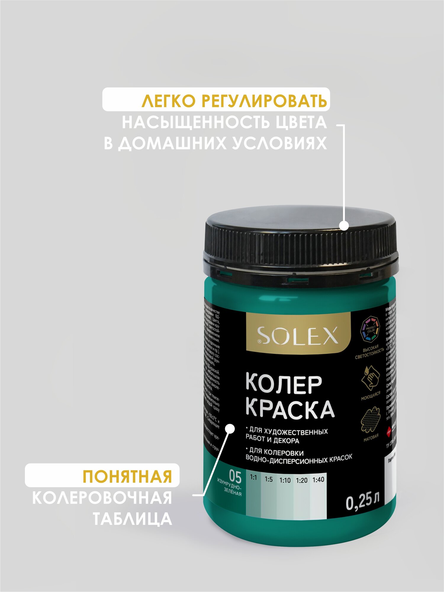 Купить Краска колеровочная SOLEX изумрудно-зеленый 0,25л банка ПЭТ