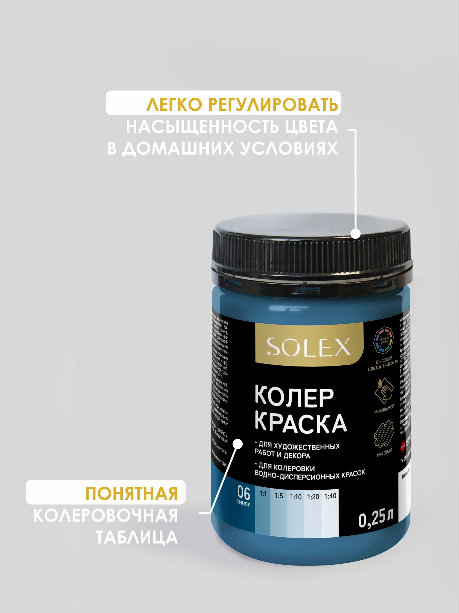 Купить Краска колеровочная SOLEX синий 0,25л банка ПЭТ