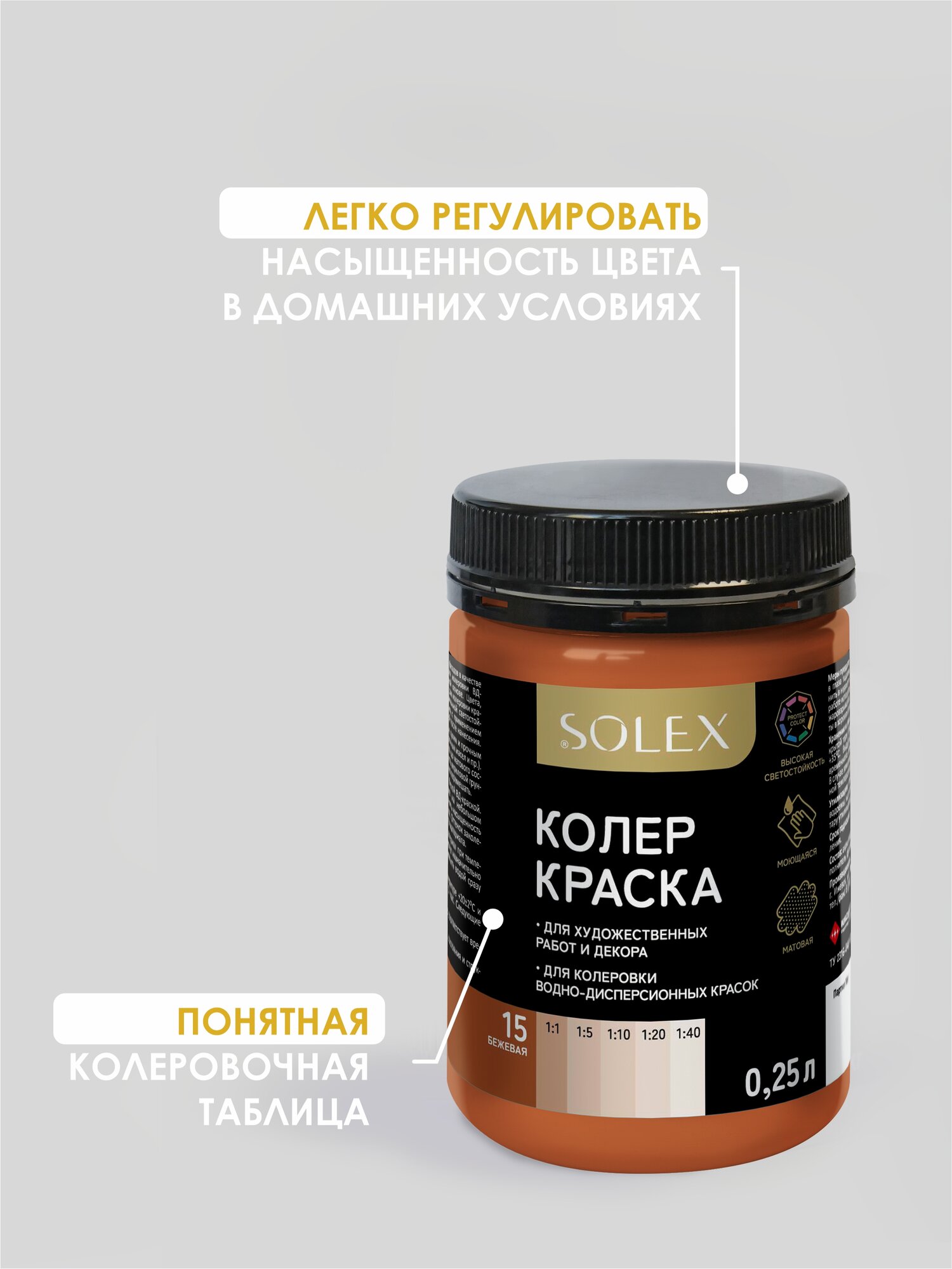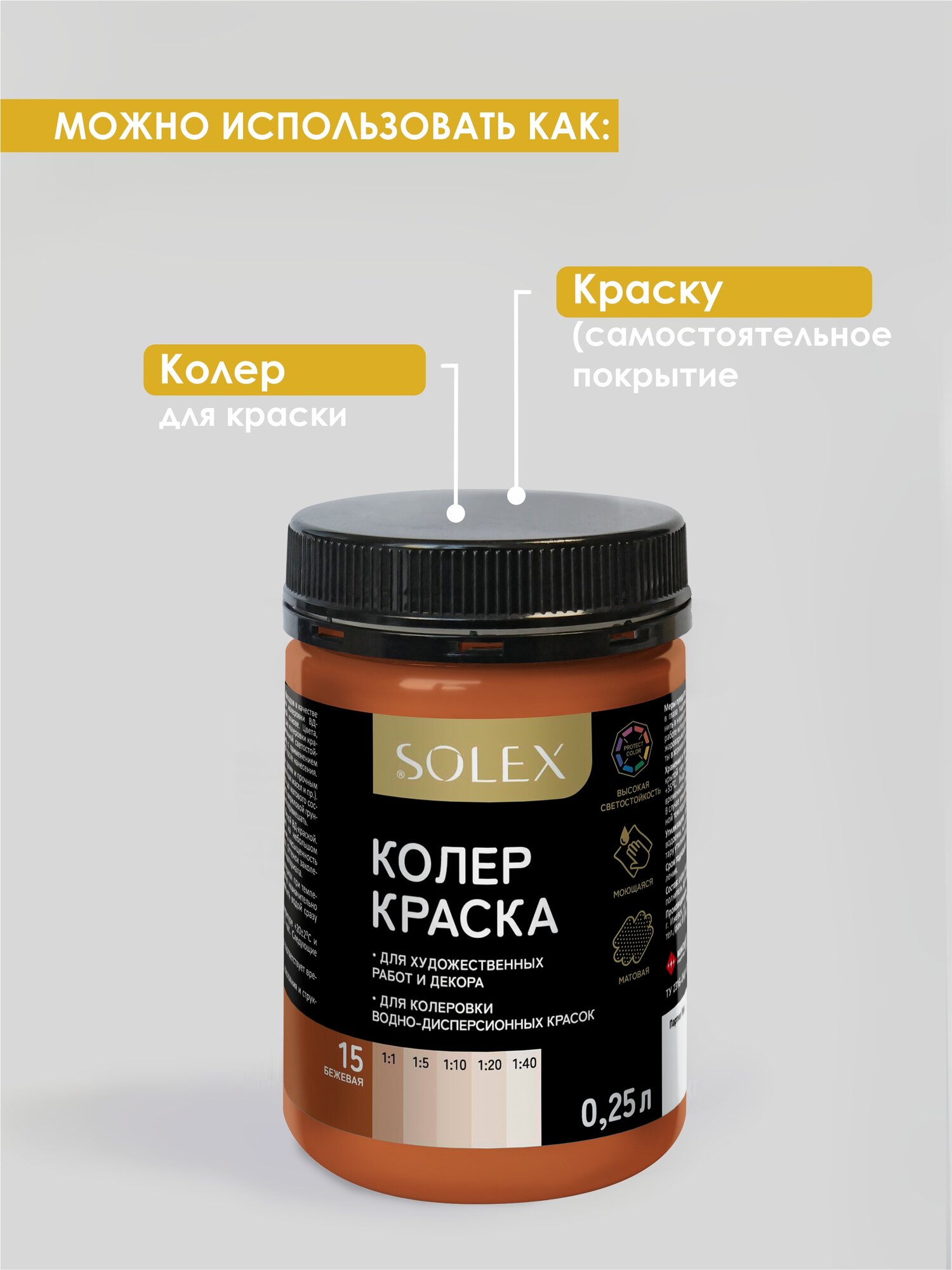 Купить Краска колеровочная SOLEX бежевый 0,25л банка ПЭТ