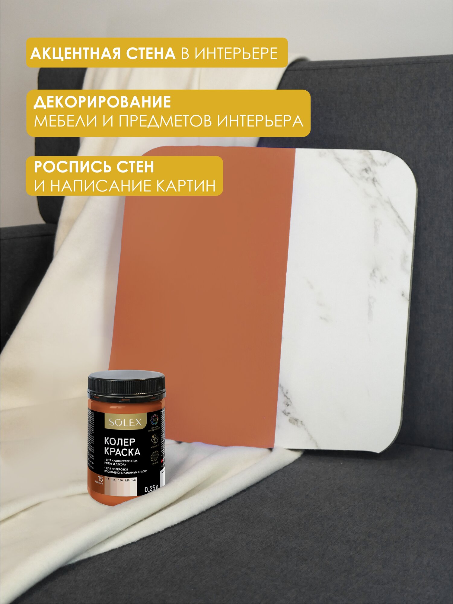 Краска колеровочная SOLEX охра 0,25л банка ПЭТ