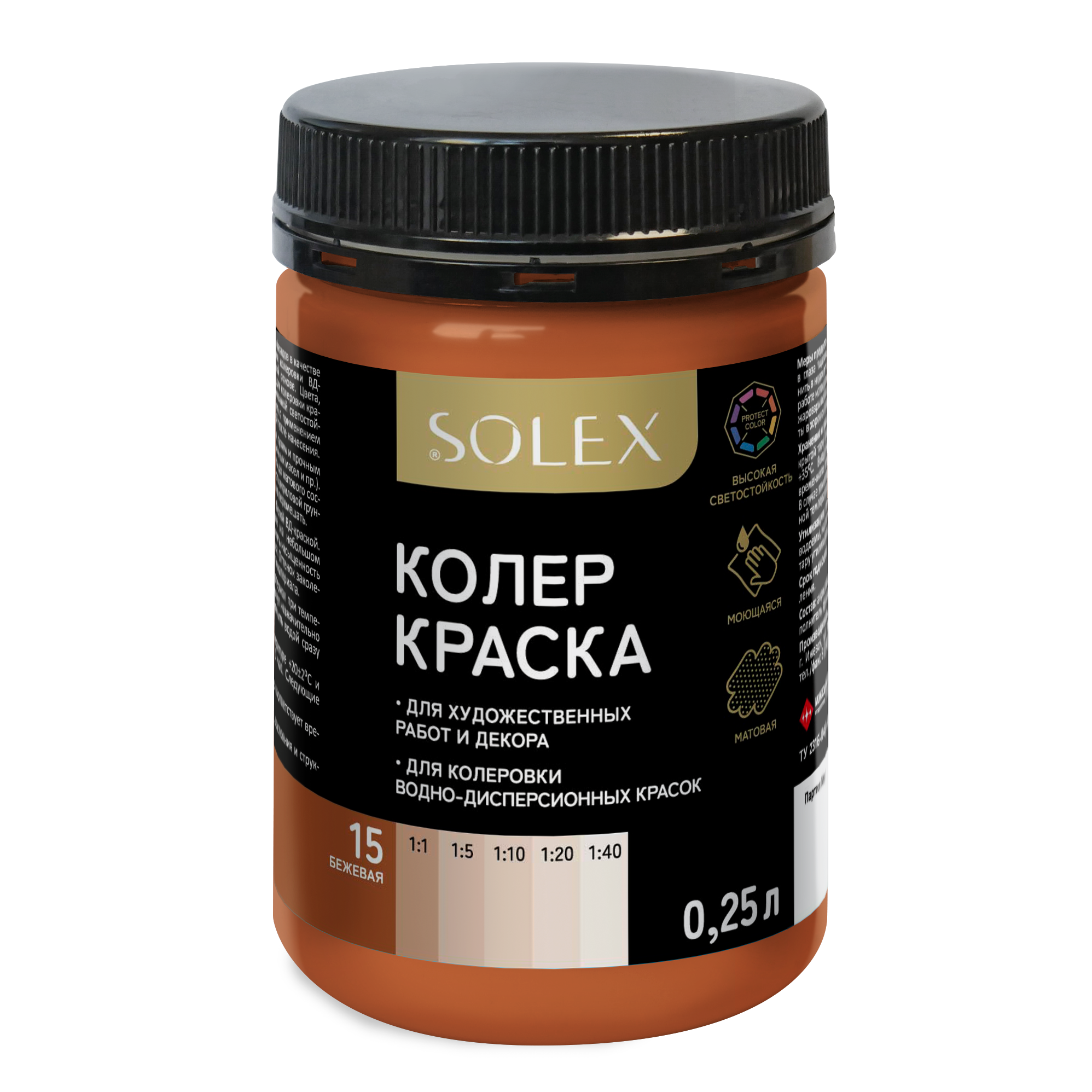Краска колеровочная SOLEX кофейный 0,25л банка ПЭТ