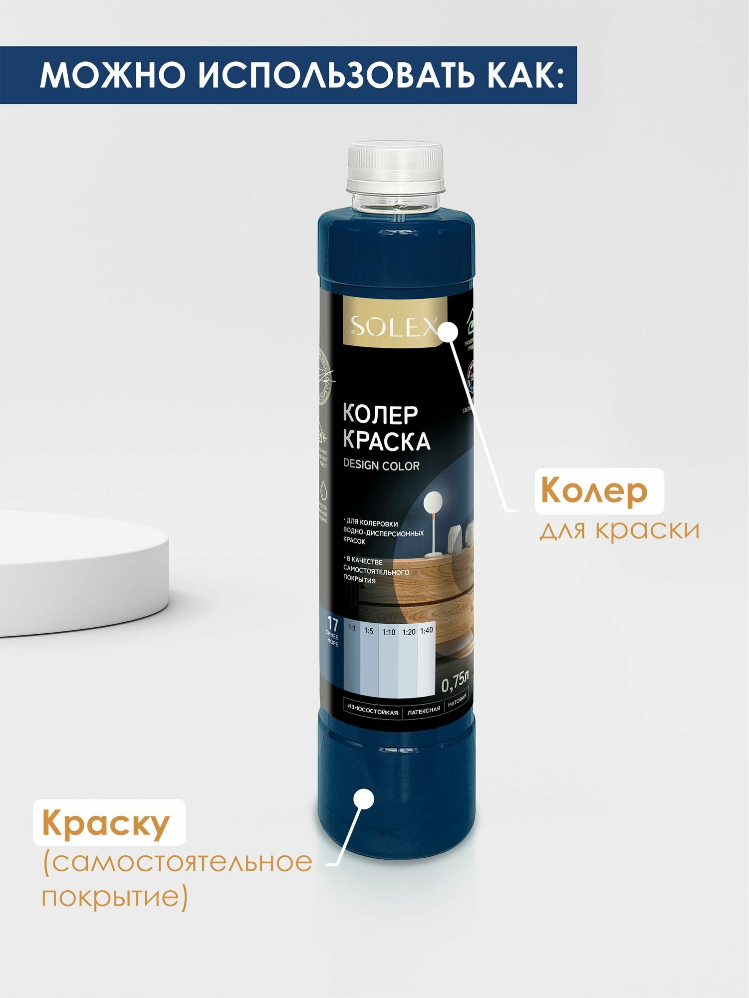 СохранитьКраска колеровочная SOLEX синее море 0,75л бутылка ПЭТ интересное: