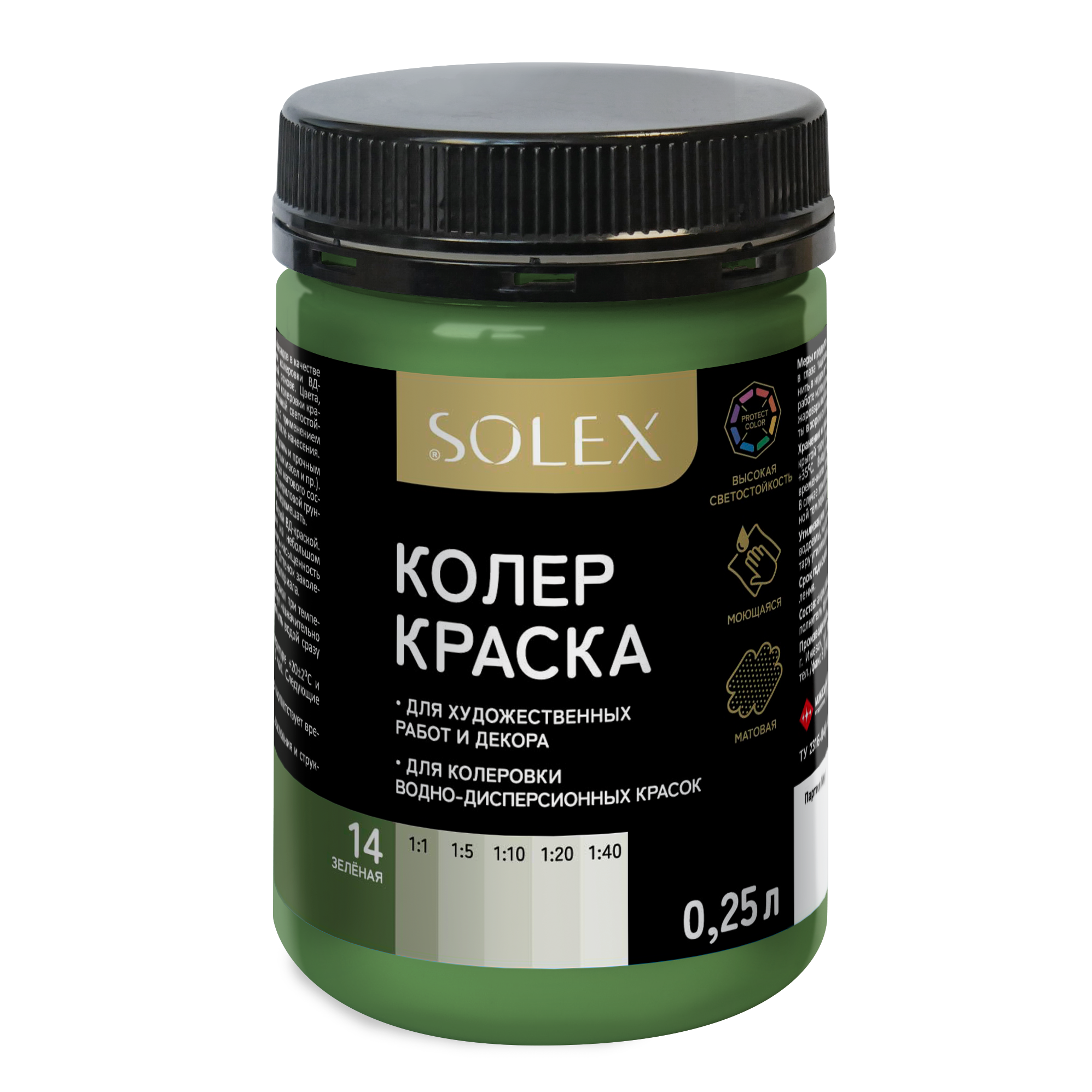 Купить Краска колеровочная SOLEX зеленый 0,25л банка ПЭТ