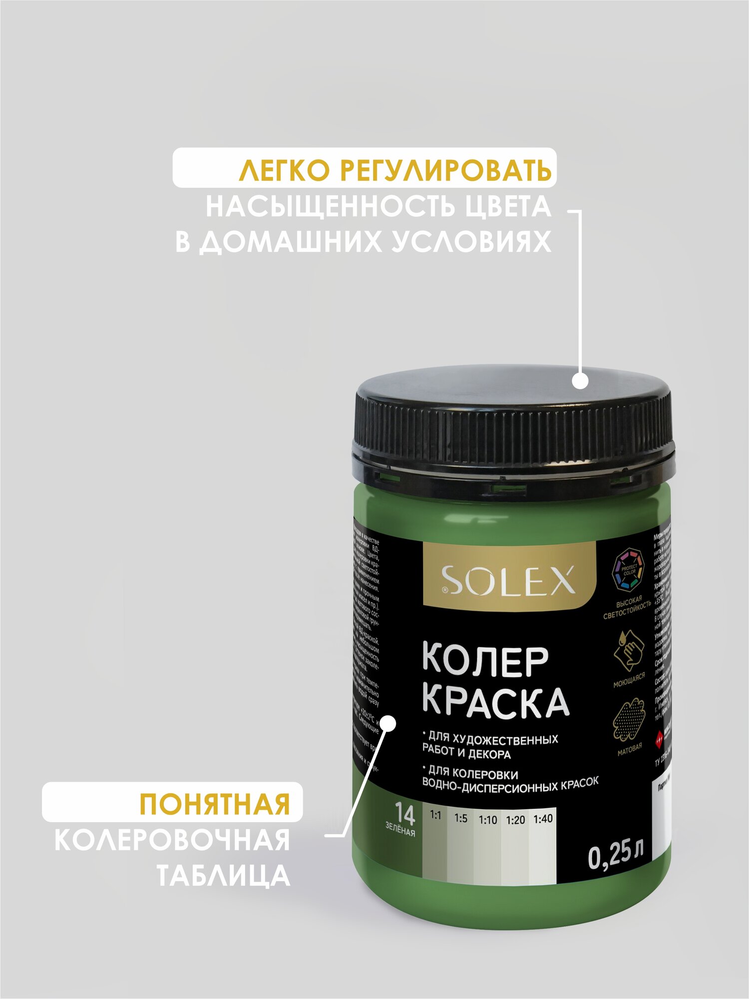 Краска колеровочная SOLEX зеленое яблоко 0,25л банка ПЭТ