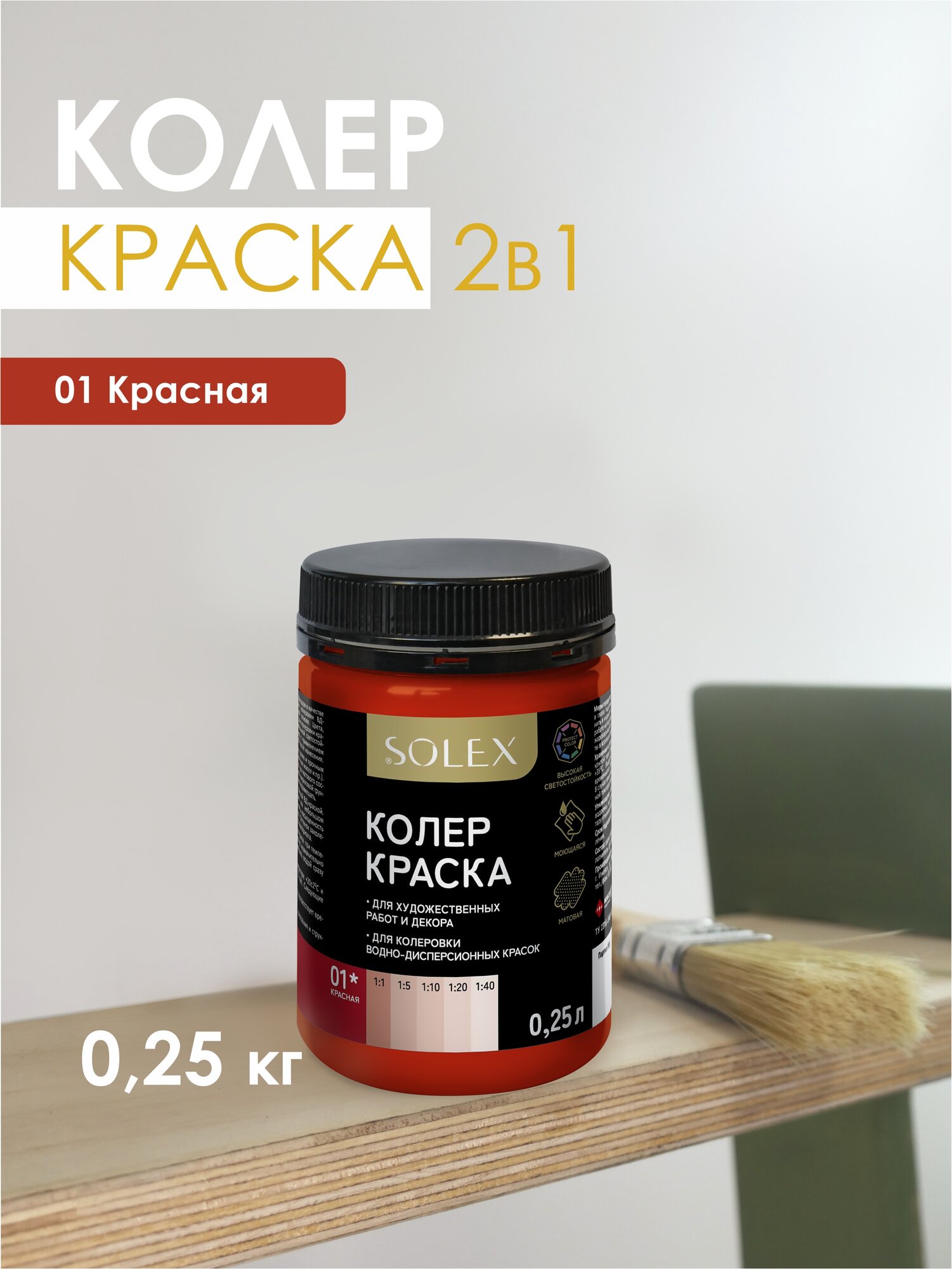 Купить Краска колеровочная SOLEX красный 0,25л банка ПЭТ