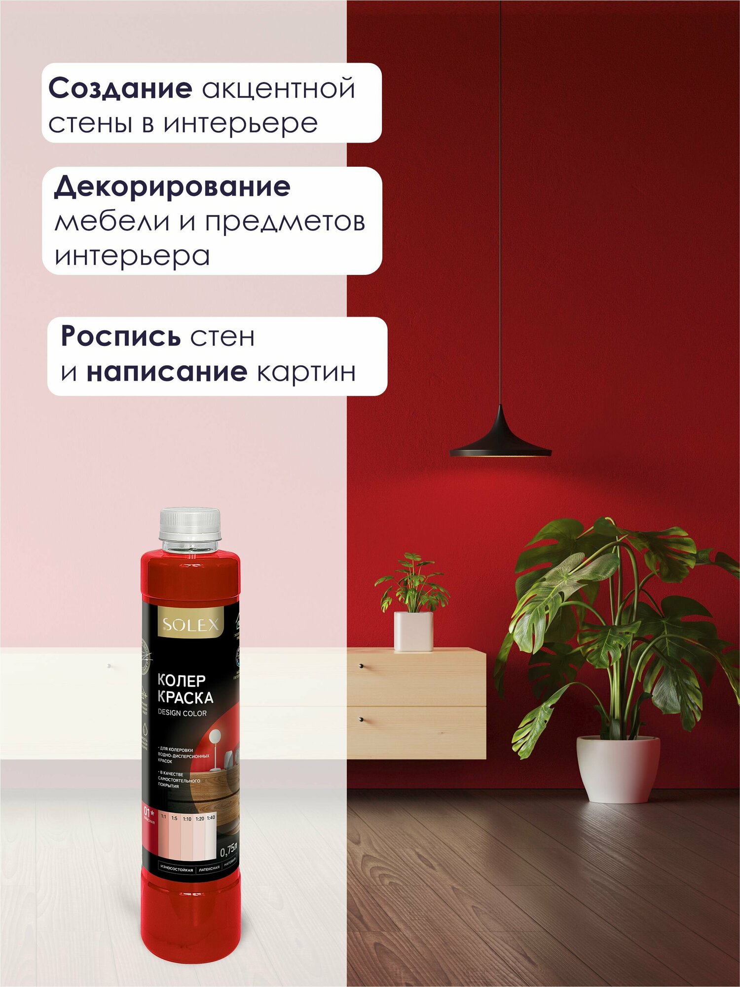 Ниже Вы можете прочитать отзывы на Краска колеровочная SOLEX красный 0,75л бутылка ПЭТ, ознакомится с подробными характеристиками, посмотреть интересные обзоры и фотографии на Краска колеровочная SOLEX красный 0,75л бутылка ПЭТ.