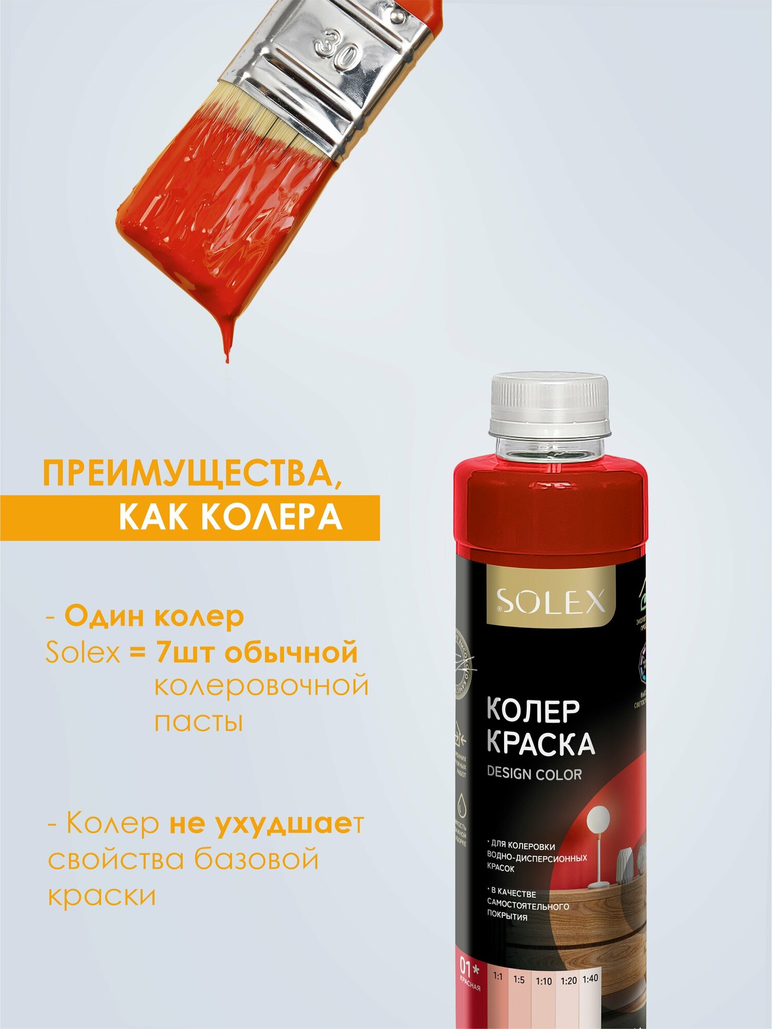 СохранитьКраска колеровочная SOLEX красный 0,75л бутылка ПЭТ интересное: