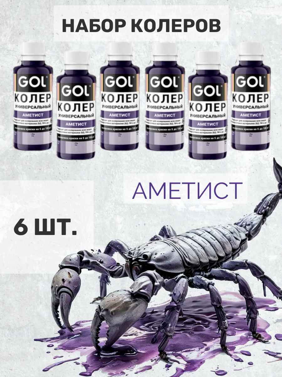 Купить Набор колер для краски фиолетовый универсальный GOL "Аметист" для гипса, лака, эмали, штукатурки, затирки. 6 шт.