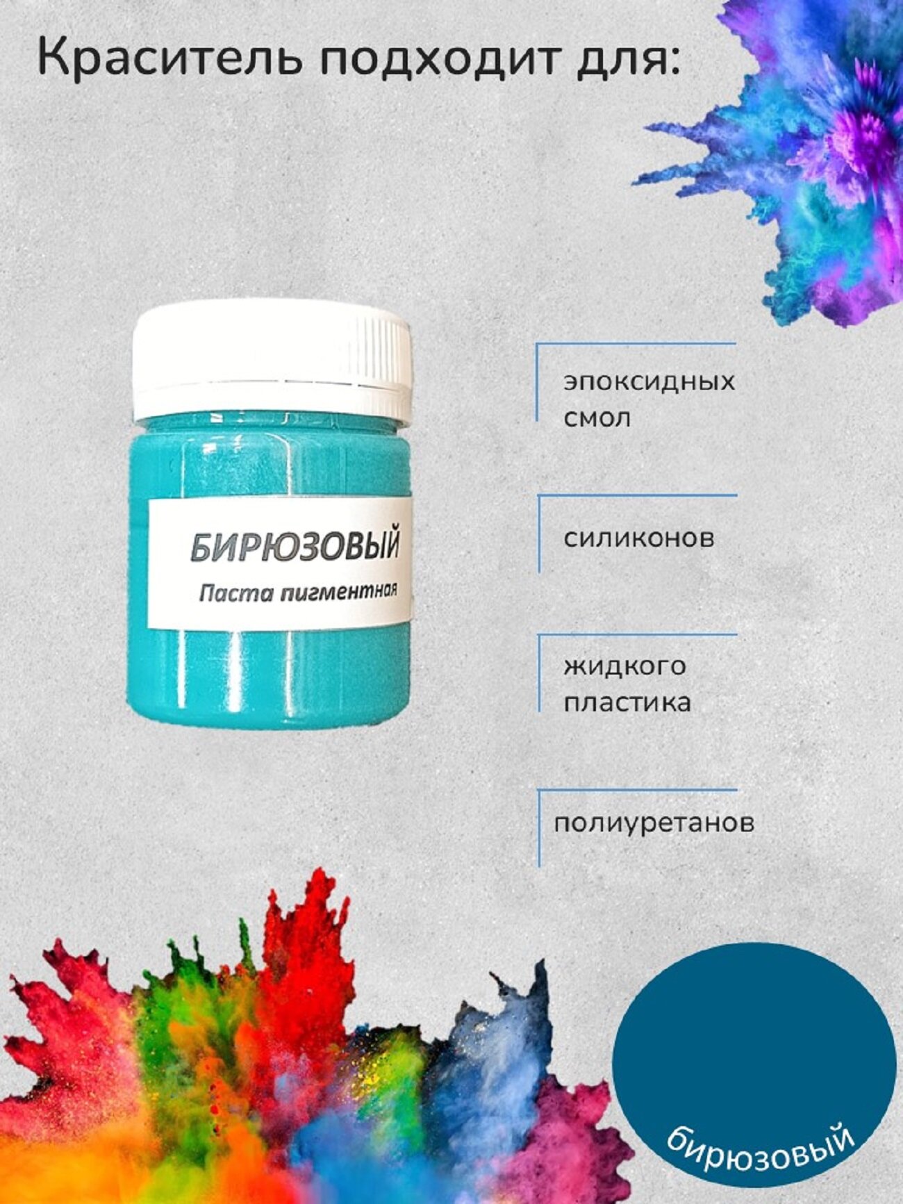 Купить Краситель для эпоксидной смолы, Бирюзовый, 50 грамм