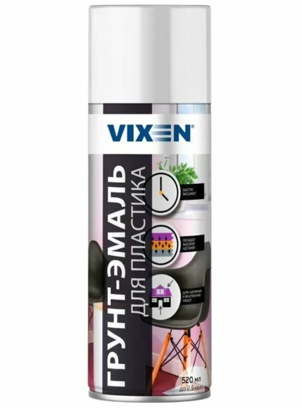Купить Грунт-эмаль для пластика Vixen белый матовый, аэрозоль 520мл, VX50103