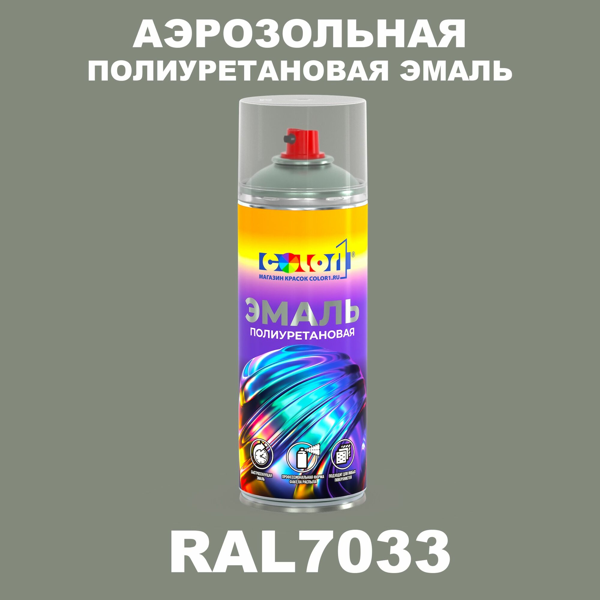 Купить Аэрозольная полиуретановая эмаль, спрей 520мл, цвет RAL7033 Цементно-серый