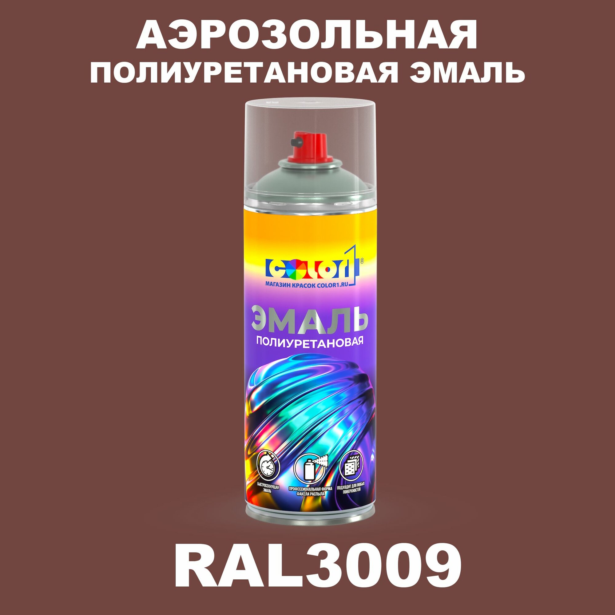 Купить Аэрозольная полиуретановая эмаль, спрей 520мл, цвет RAL3009 Оксид красный