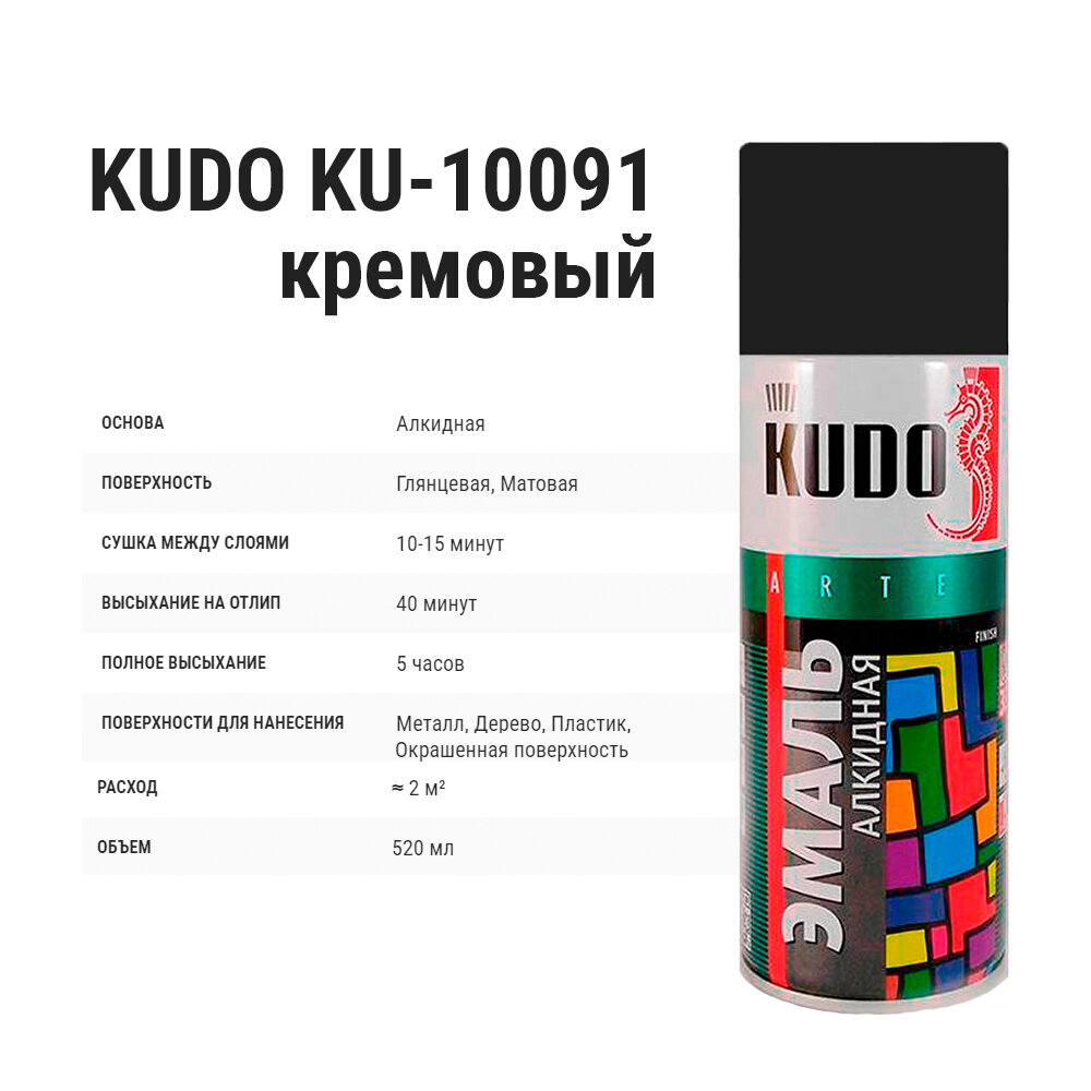 Ниже Вы можете прочитать отзывы на Краска эмаль алкидная в баллончиках аэрозольная KUDO KU-10091 RAL 1001 кремовая, ознакомится с подробными характеристиками, посмотреть интересные обзоры и фотографии на Краска эмаль алкидная в баллончиках аэрозольная KUDO KU-10091 RAL 1001 кремовая.