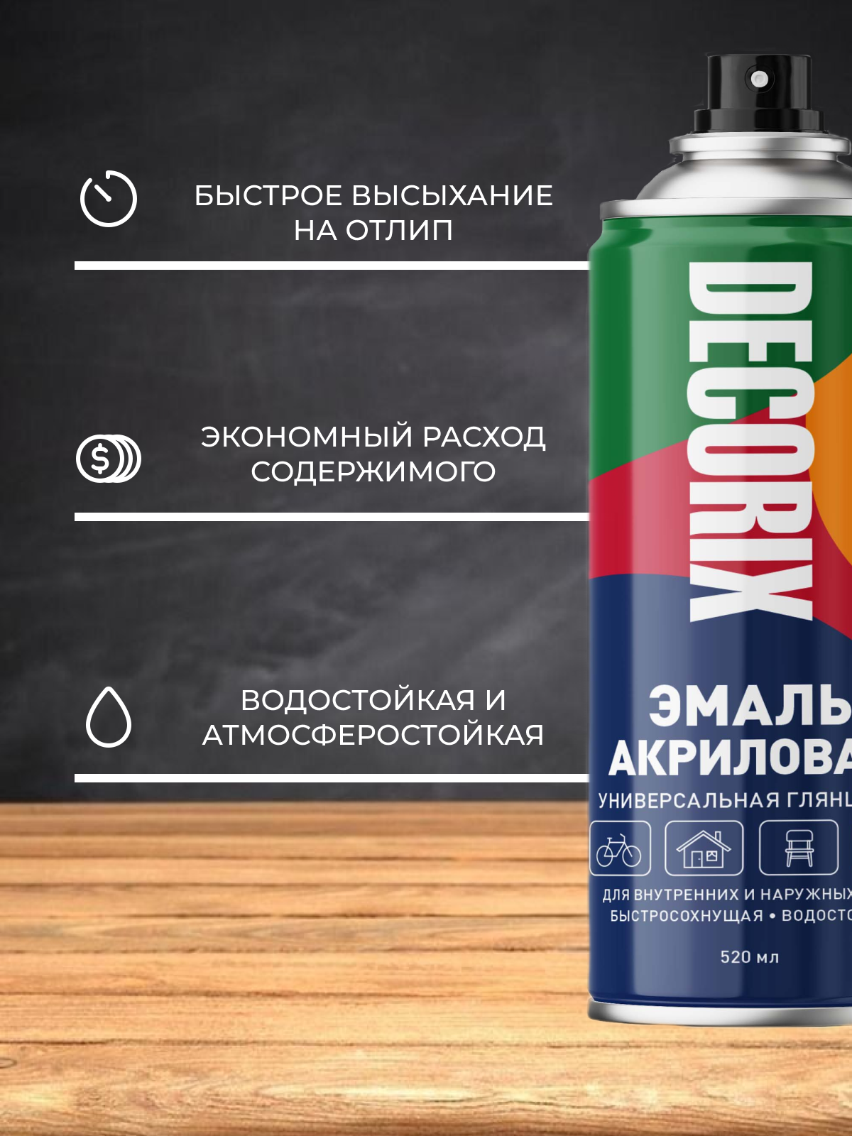 Decorix Аэрозольная эмаль универсальная (чёрный, глянцевый, 520 мл)