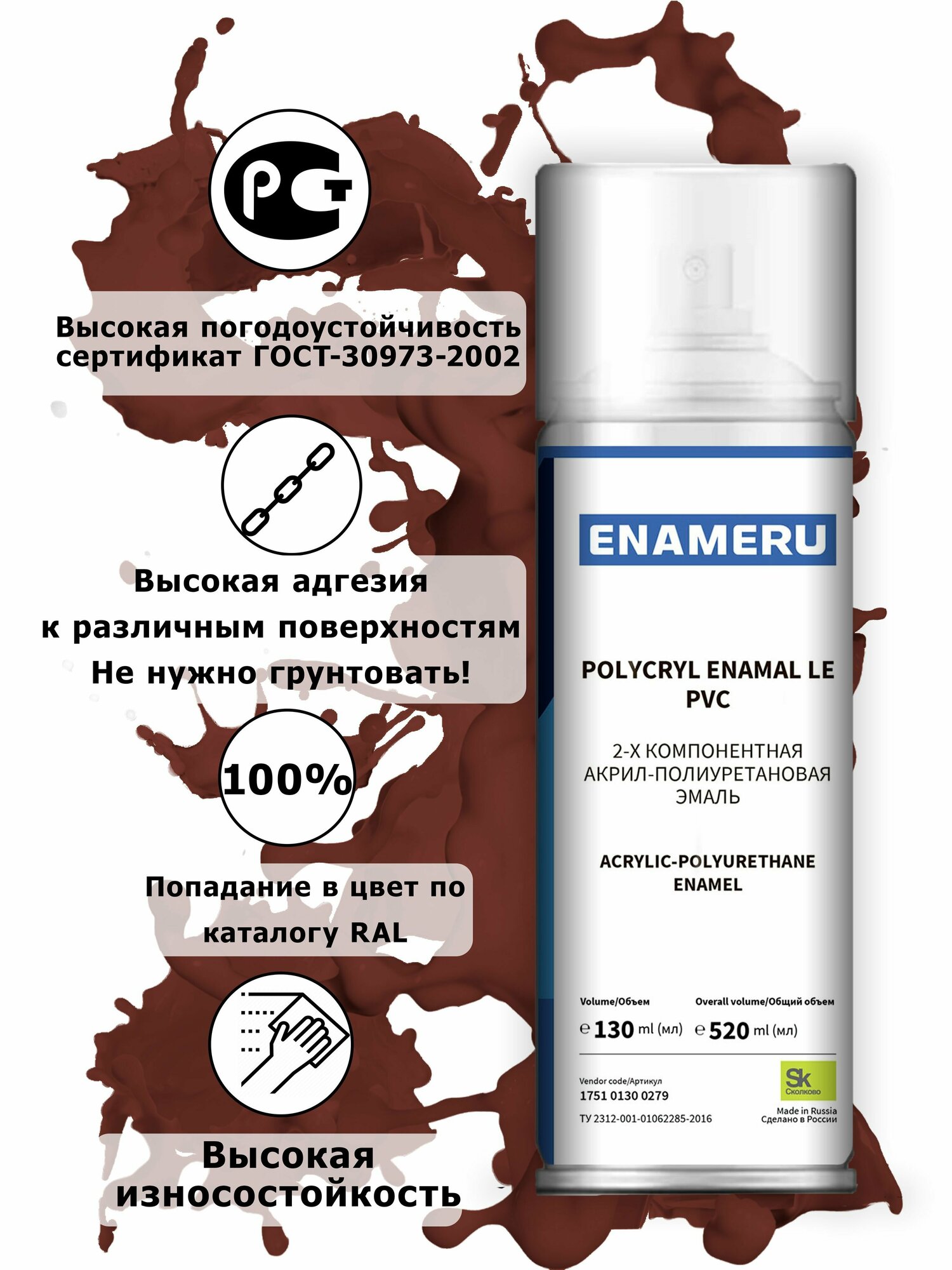 Купить Аэрозольная краска для Стекла, Керамики Энамеру, Акрил-полиуретановая, Полуматовая, Красно-коричневый RAL 8012, 0.52л