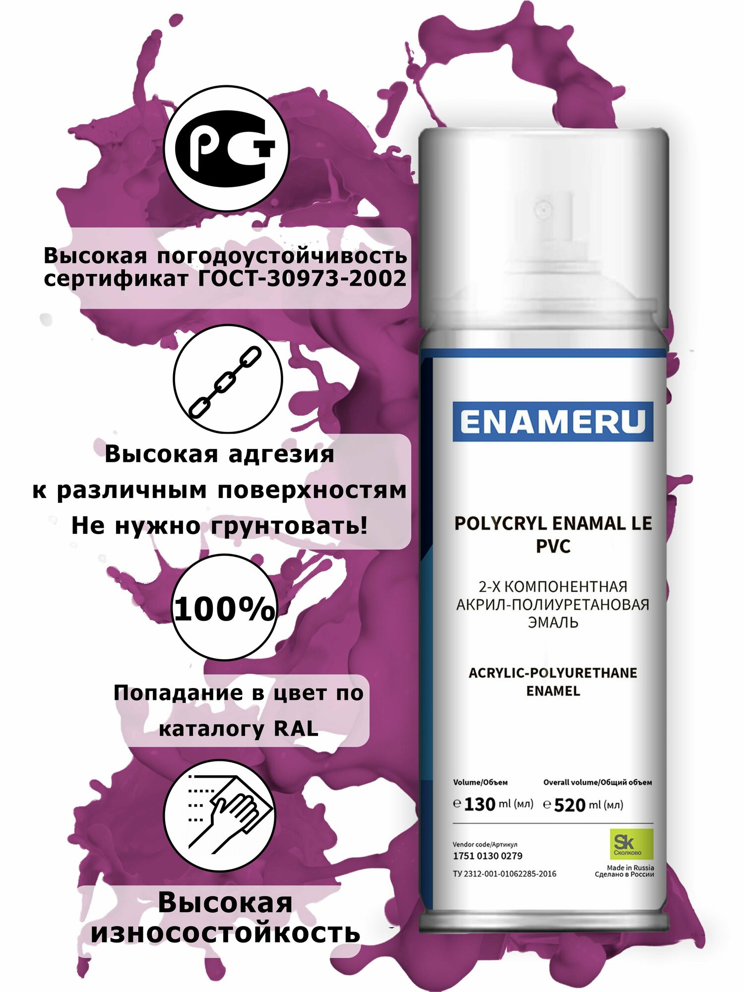 Аэрозольная краска для Стекла, Керамики Энамеру, Акрил-полиуретановая, Полуматовая, Транспортный пурпурный RAL 4006, 0.52л