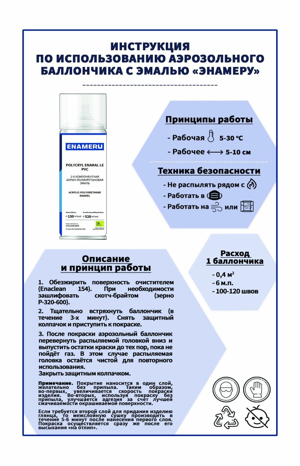 Аэрозольная краска для Стекла, Керамики Энамеру, Акрил-полиуретановая, Полуматовая, Транспортный белый RAL 9016, 0.52л