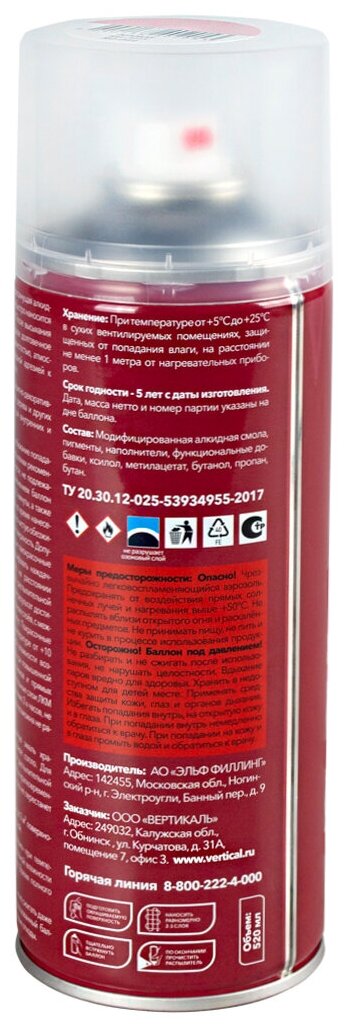 Краска аэрозольная алкидная Rayday RD-041, глянцевая, 520 мл, красная