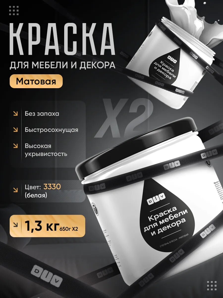 Краска для мебели без запаха быстросохнущая, матовая, молочный, 1.3кг